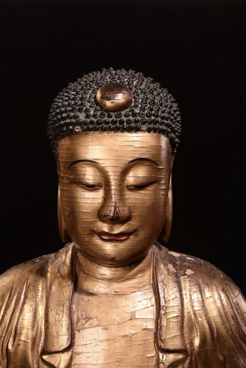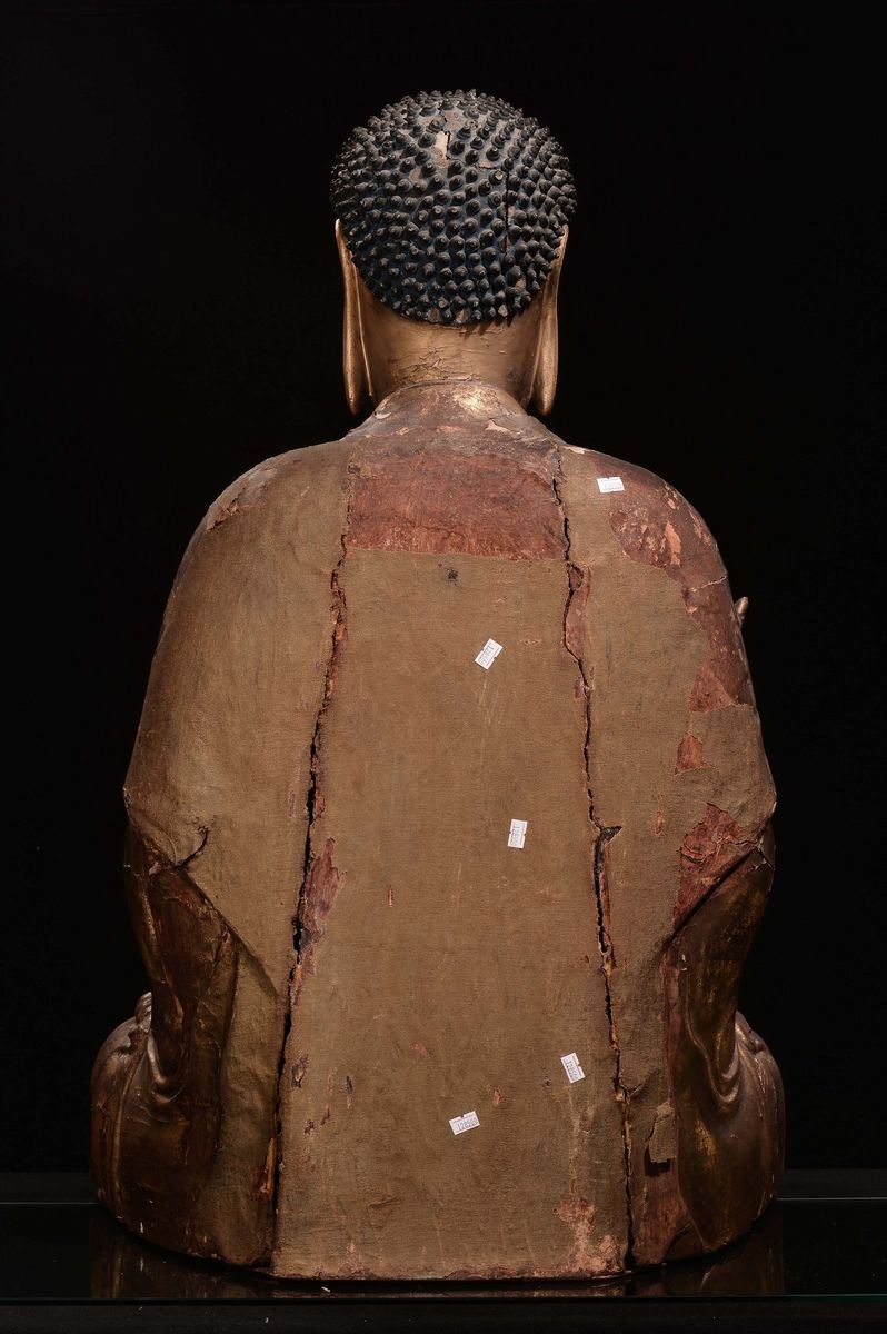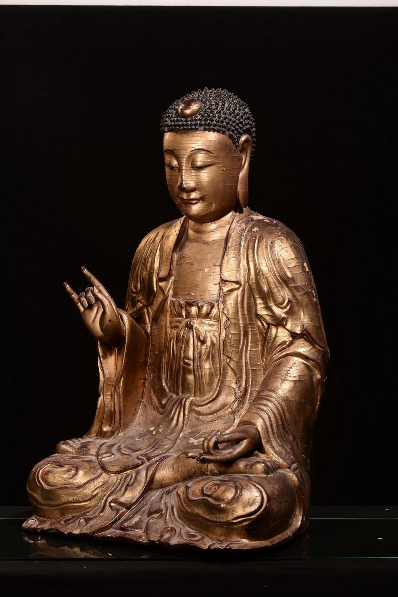 An important gilt wood Buddha, China, Yuan Dynasty (1279-1368)