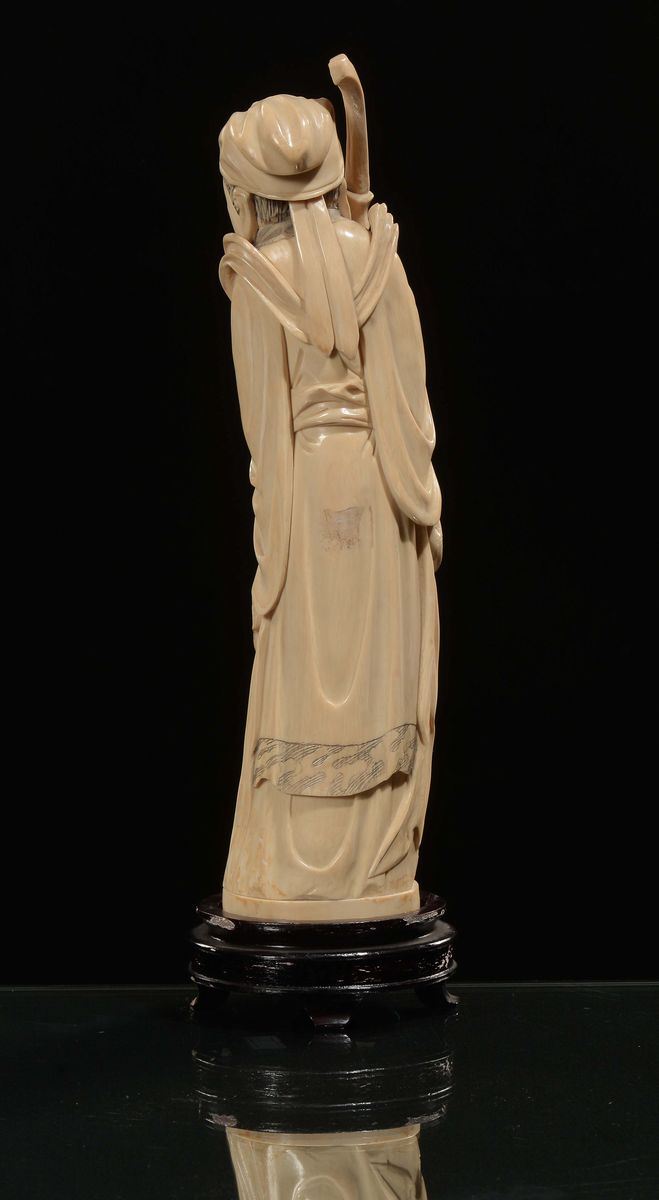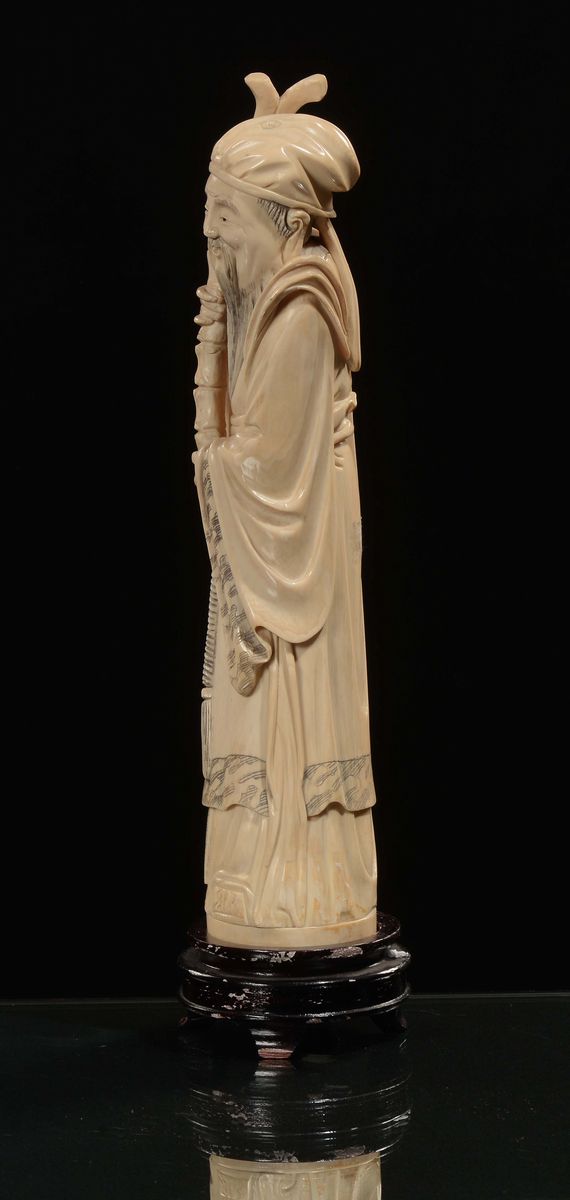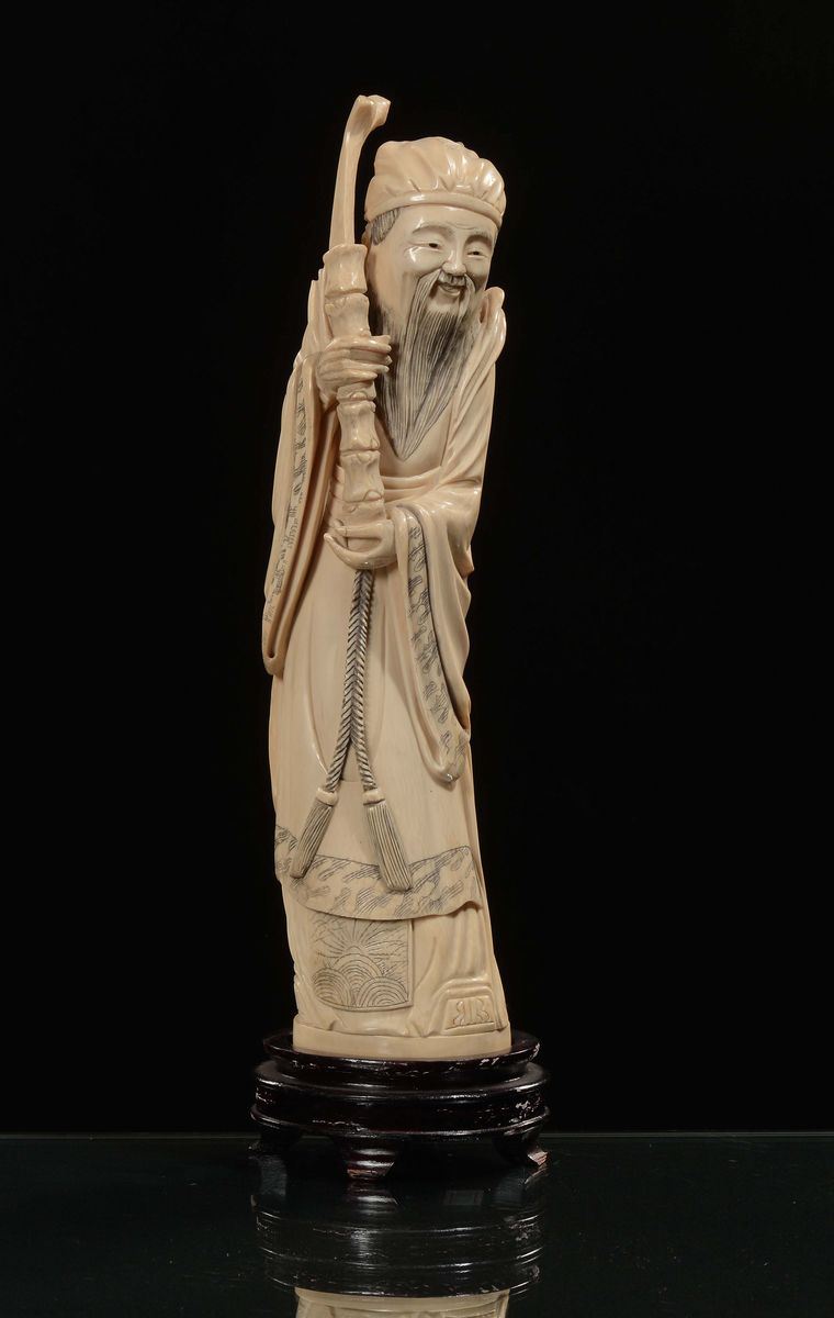 An ivory figure of wise man with stick, China, Qing Dynasty, early 20th century