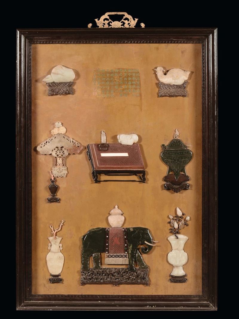 Coppia di pannelli con pietre dure, Cina, Dinastia Qing, XIX secolo