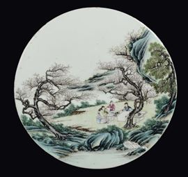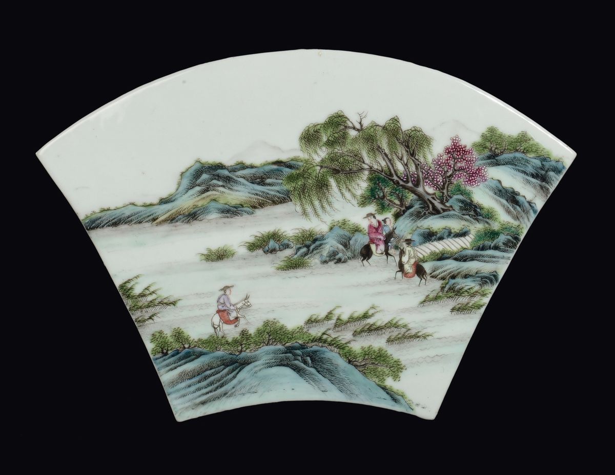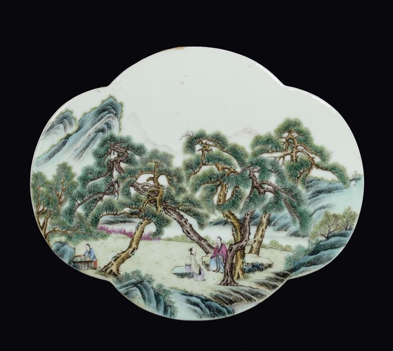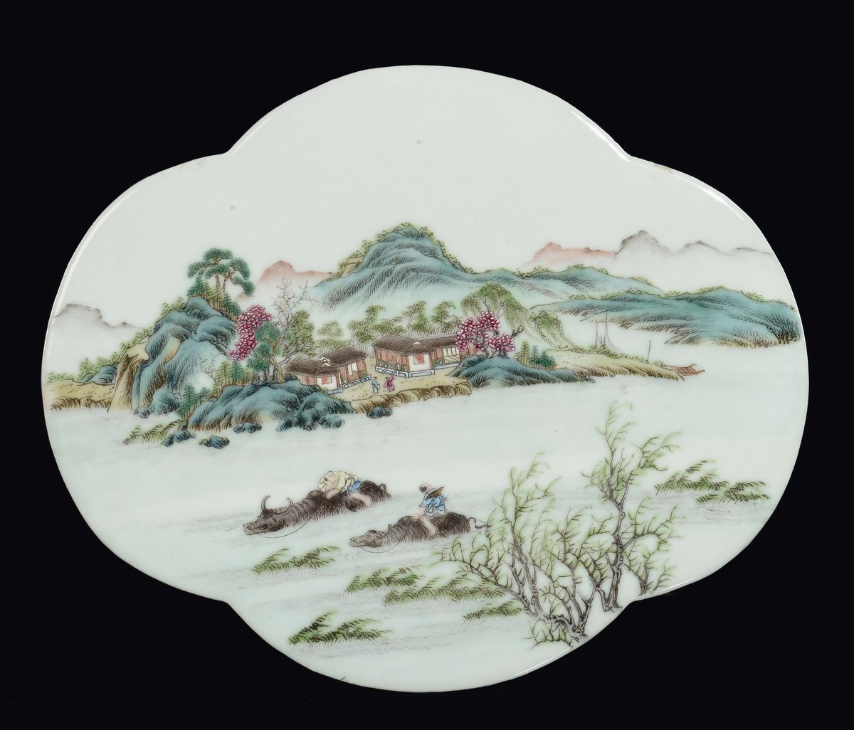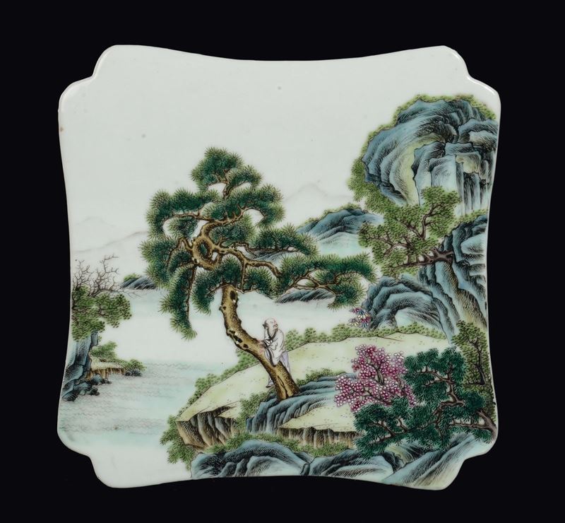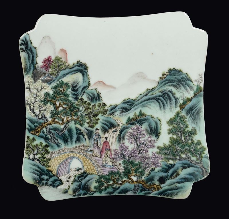 Six Famille Rose porcelain plaques with landscapes and oriental life scenes, China, Qing Dynasty, 19th century