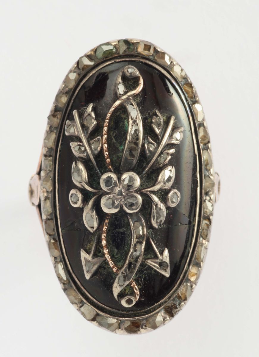 A 19th century enamel, gold and silver ring
