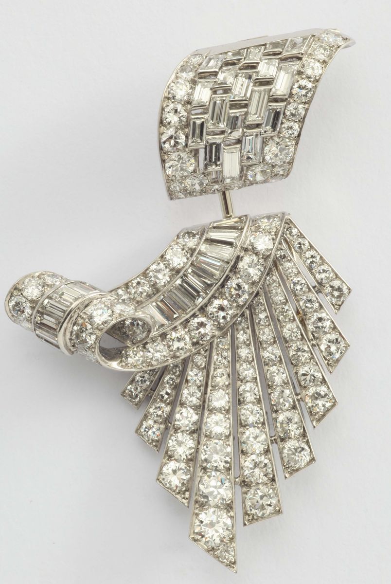 A diamond and platinum brooch. Signed G. Petochi, Roma