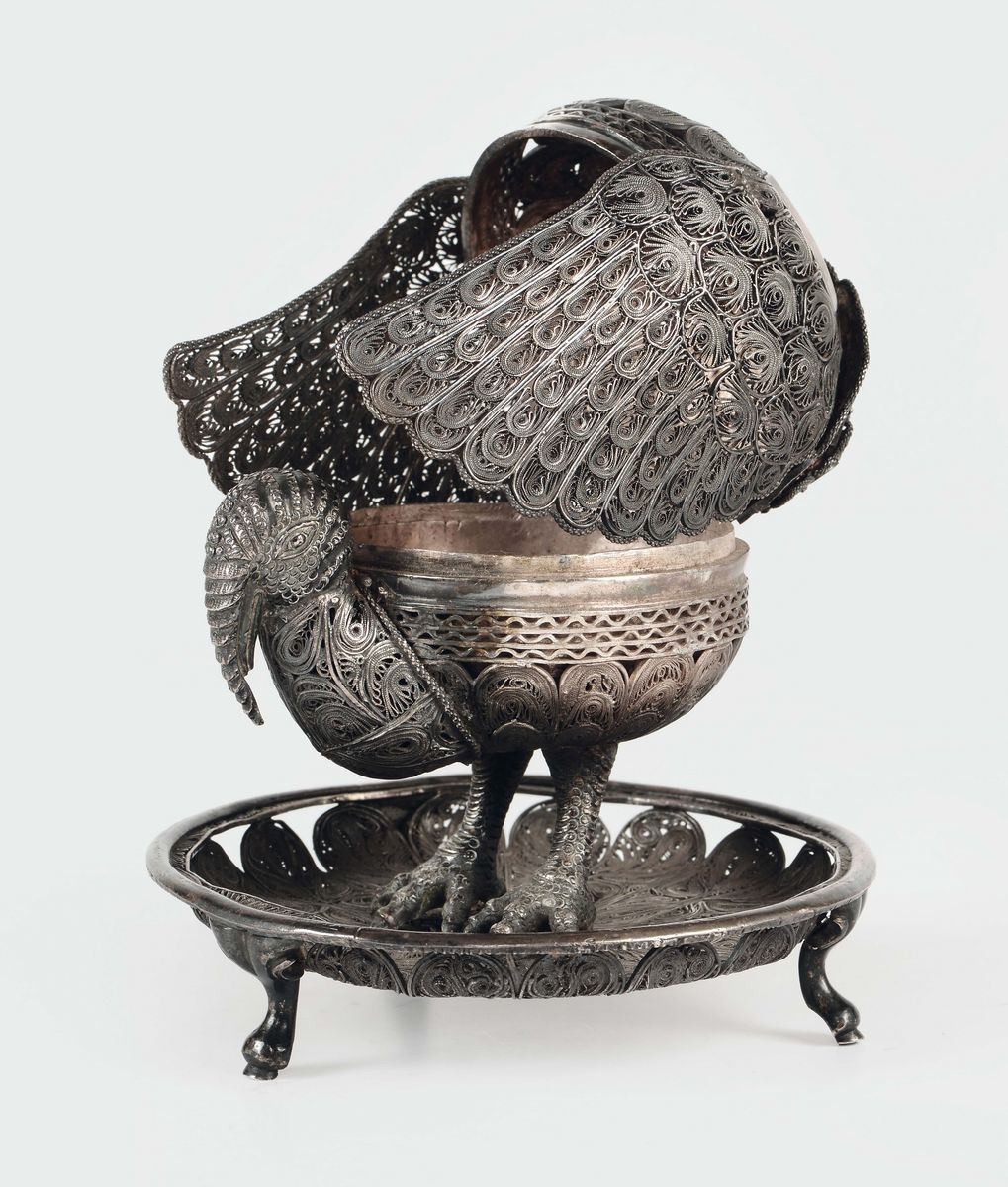 corpo apribile poggiante su piattino circolare tripode, altezza cm 13