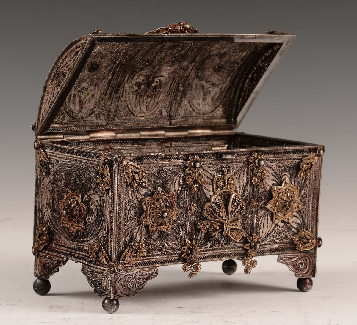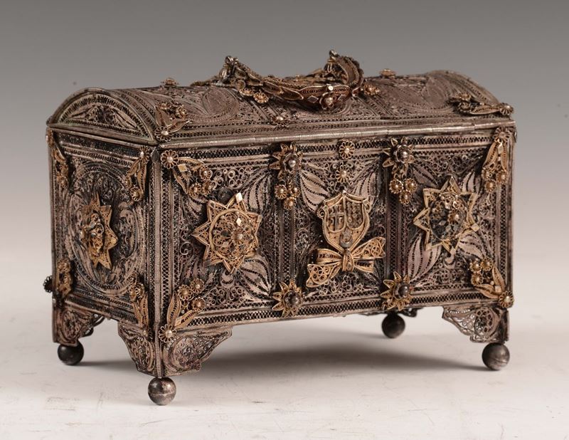A small gilt silver filigree box, Balkan or Russian art, early 20th century