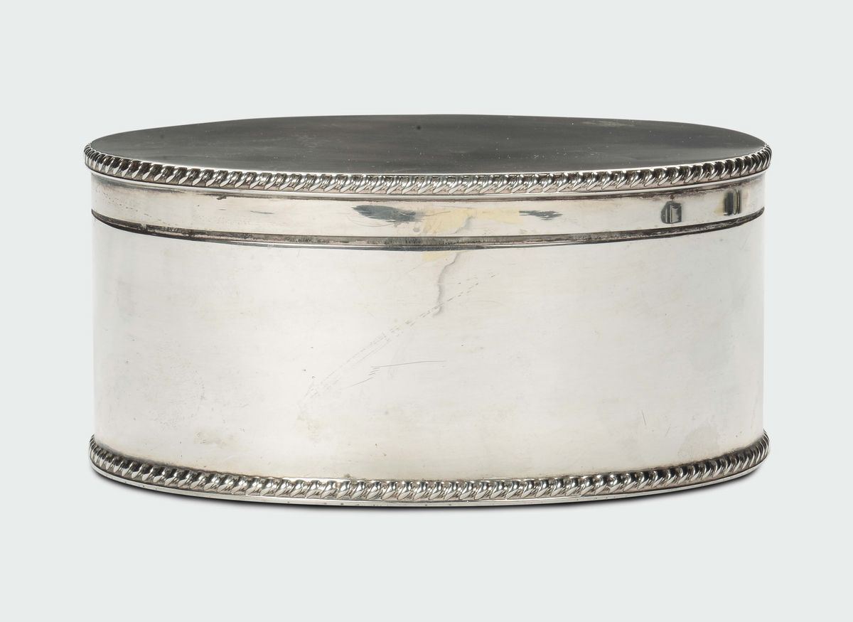 An oval box and cover, silversmith Goldsmiths & Silversmith Company, London 1953