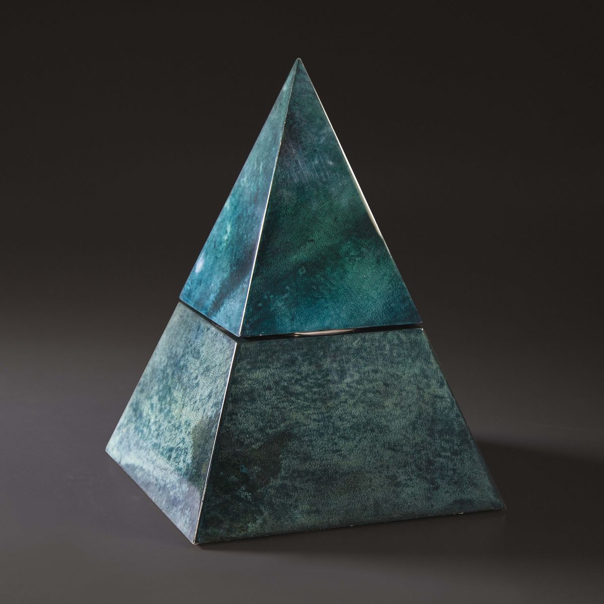 Piramide portaghiaccio in legno rivestito in pergamena e rifinito in poliestere. Prod. Tura, Italia, 1970 ca. cm 30x44x30