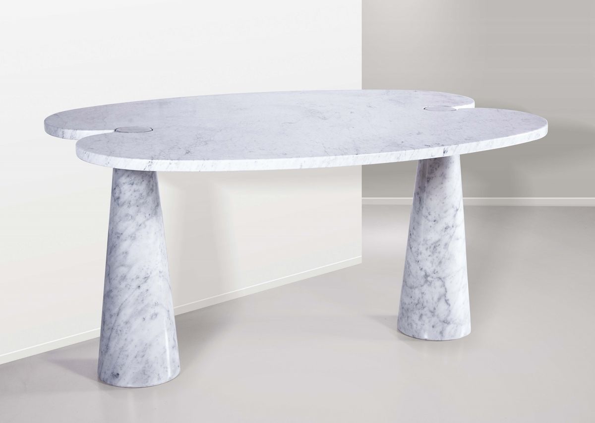 Tavolo della serie Eros in marmo bianco di Carrara.Prod. Skipper, Italia, 1970 ca.cm 138x72x110