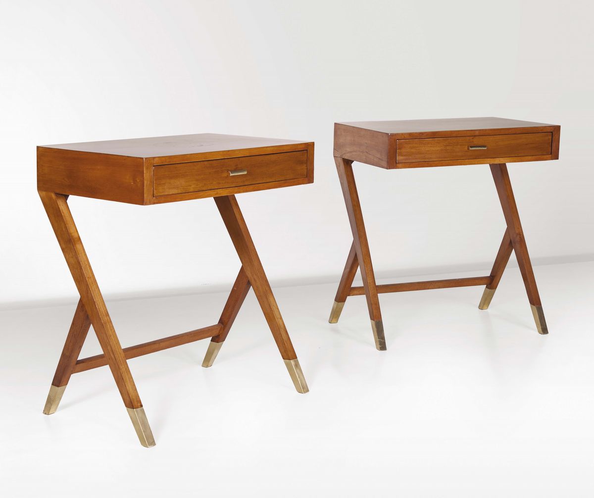Coppia di consolle in legno con rifiniture in ottone