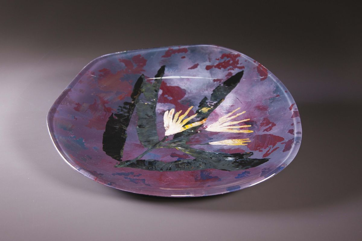 Piatto in cristallo dipinto.Prod. Fontana Arte, Italia, 1950 ca. cm 52x6