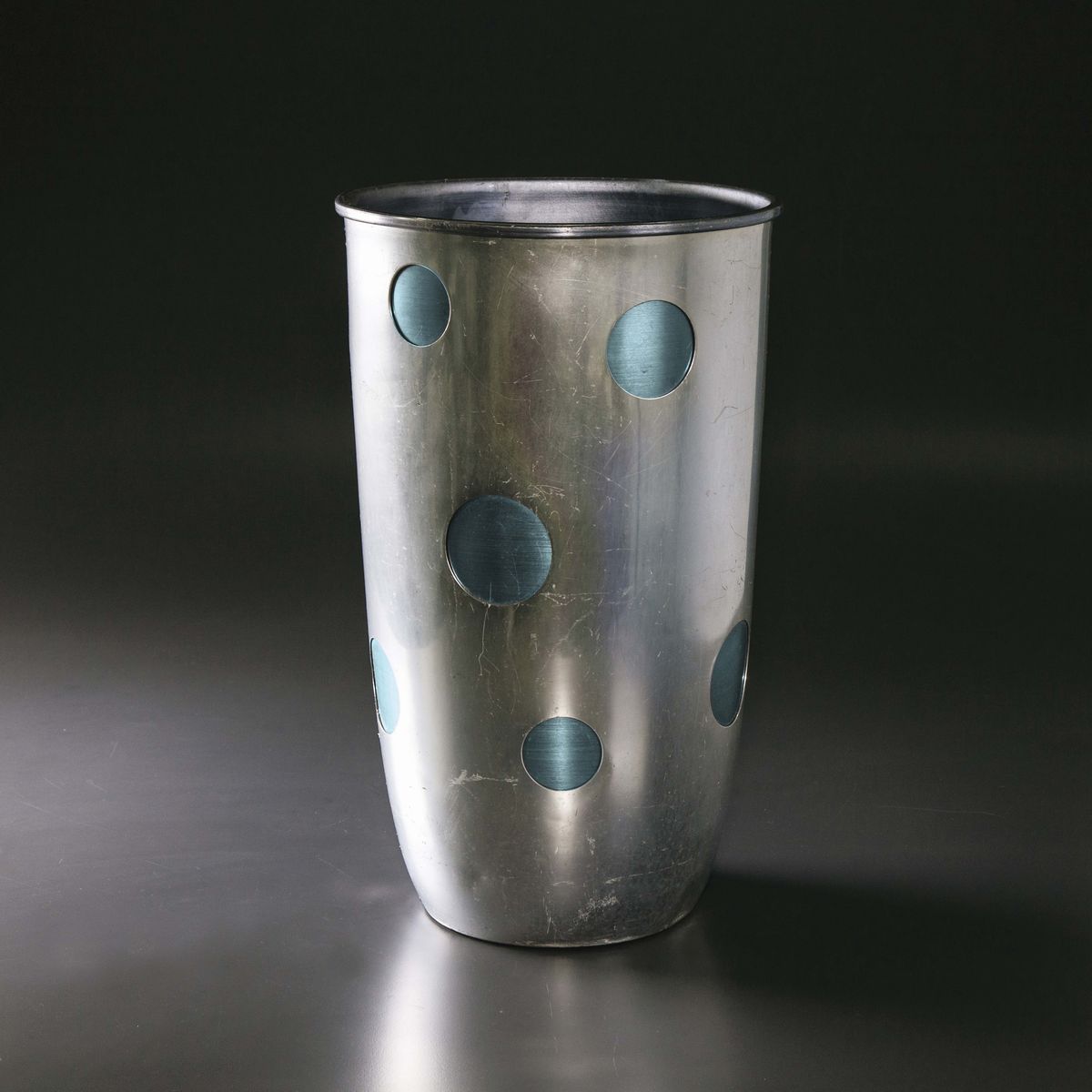 Portaombrelli composto da lastra di alluminio tornita, tranciata e anodizzata. Marchio Rinnovel Italy impresso sotto la base.Prod. Rinnovel, Italia, 1955cm 47x28