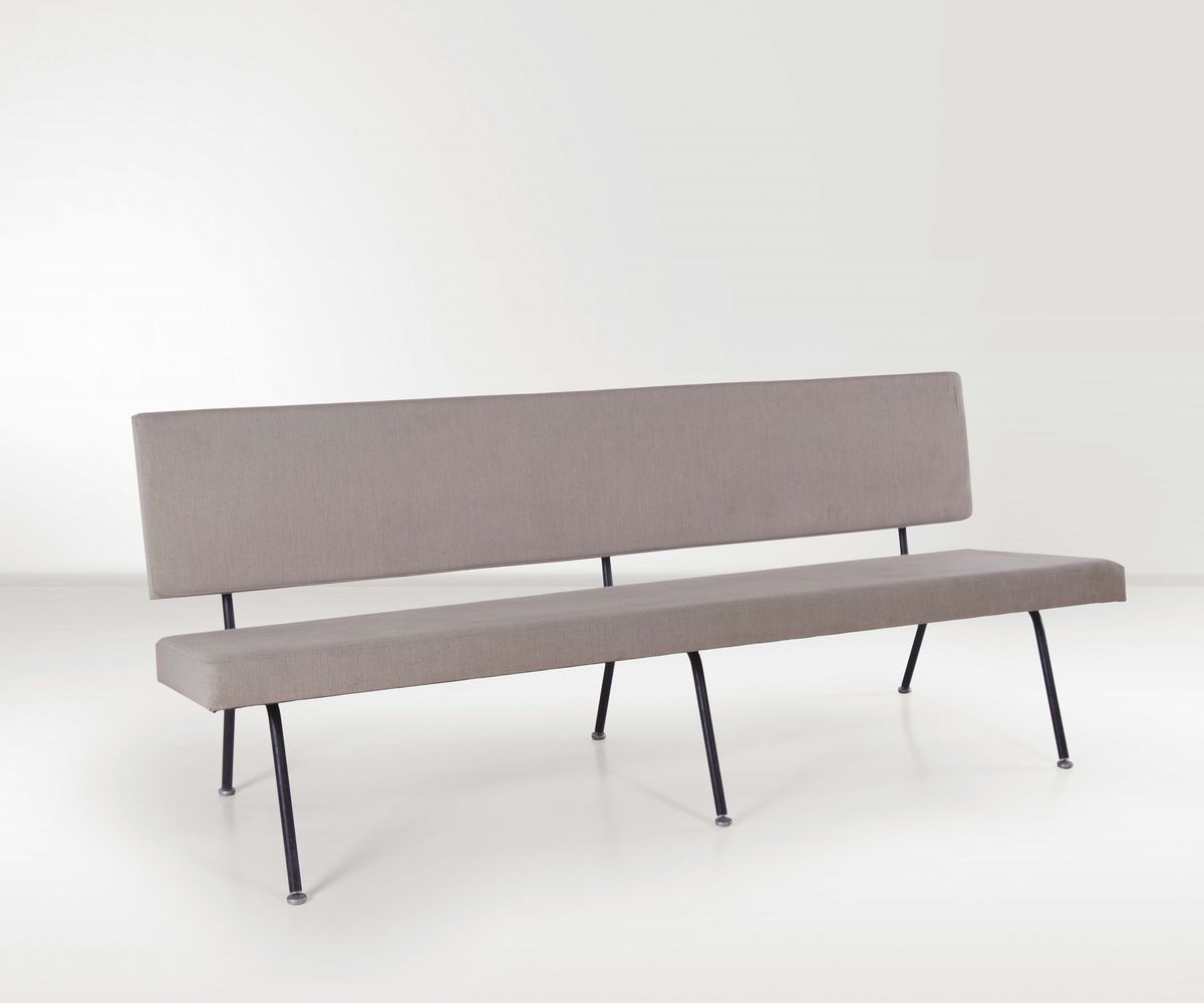 Divano con struttura in tubolare d’acciaio laccato e rivestimenti in cotone.Prod. Knoll International, Germania, 1950 ca. cm 183x74x62