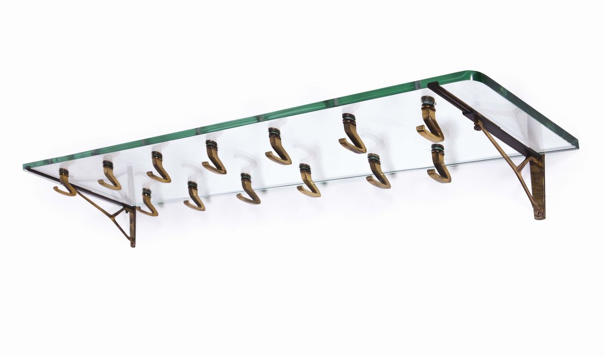 Appendiabiti in cristallo e ottone. Prod. Tecno, Italia, 1950 ca.cm 125x25x7