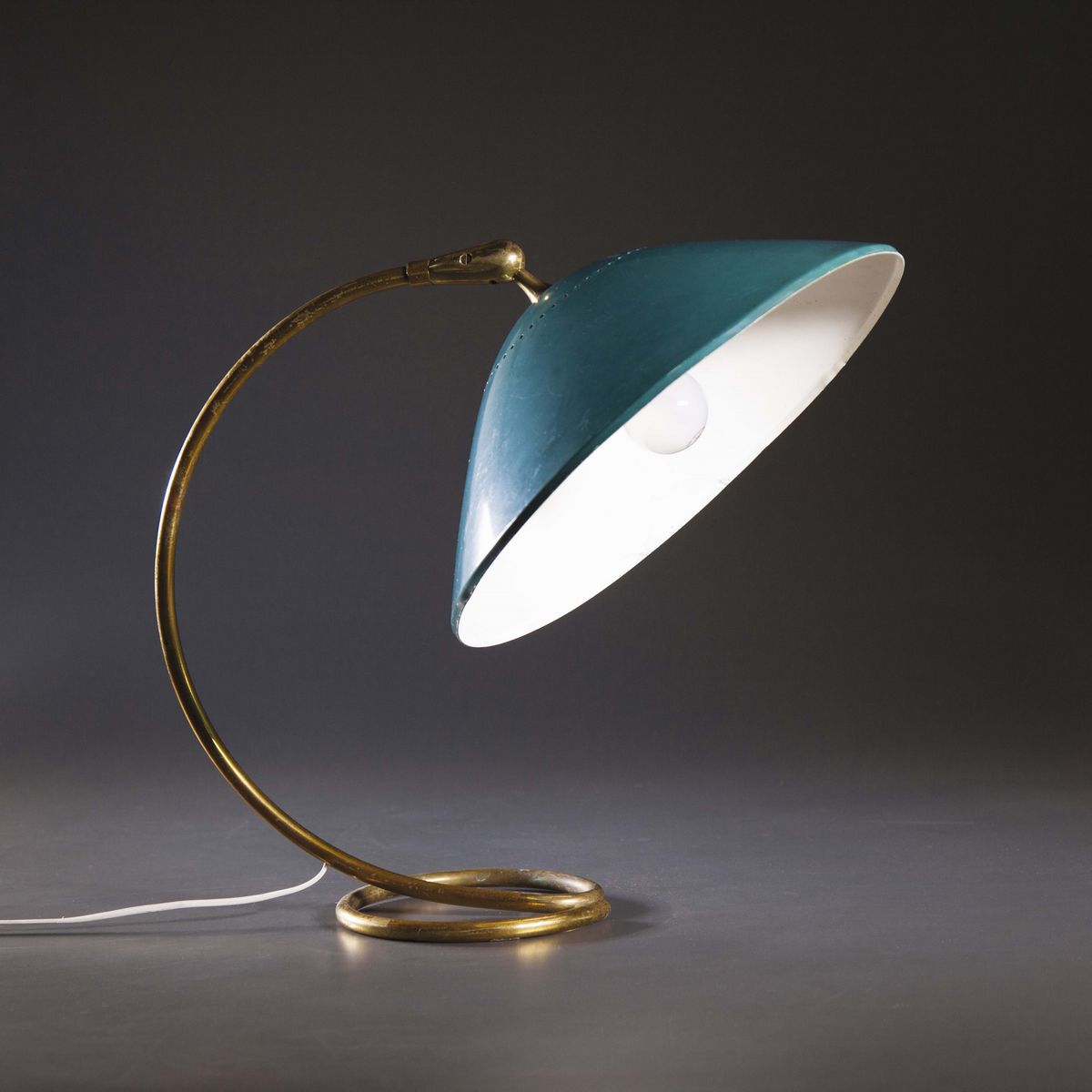 Lampada da tavolo in ottone e metallo verniciato.Prod. Stilnovo, Italia, 1950 ca.cm 36x45