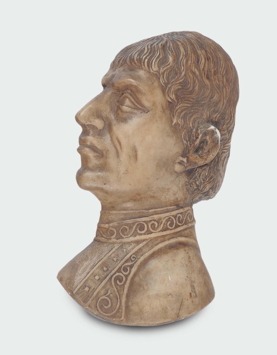 A pair of patinated marble male profiles, Italy, probably 20th century