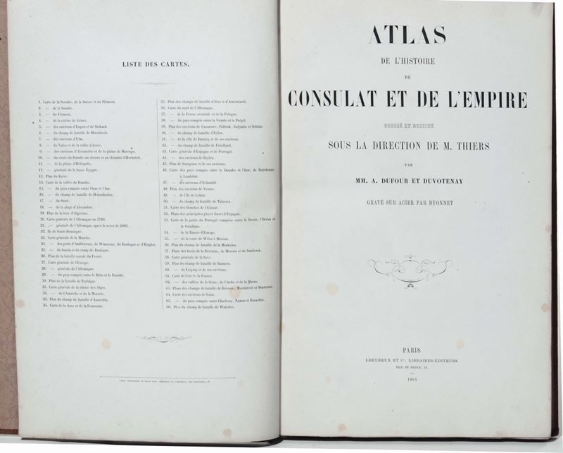 volume contenente 66 carte geografiche incise. Dressè et dessinè par M. Thiers, Paris 1864