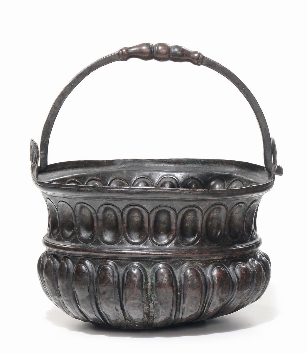 Bacile baccellato in rame, XVII secolo
