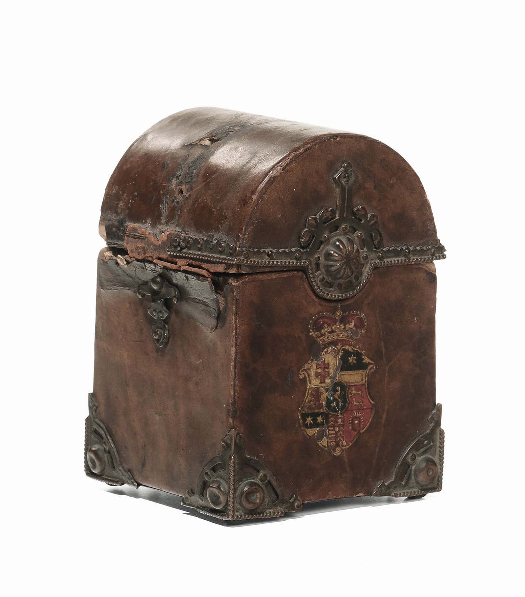 Bauletto in cuoio con montatura in metallo, Germania Meridionale XIX secolo