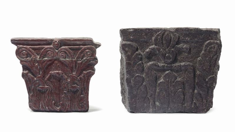 Collezione di sei capitelli di lesena in diversi marmi colorati