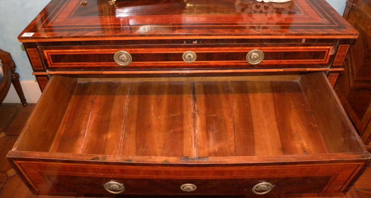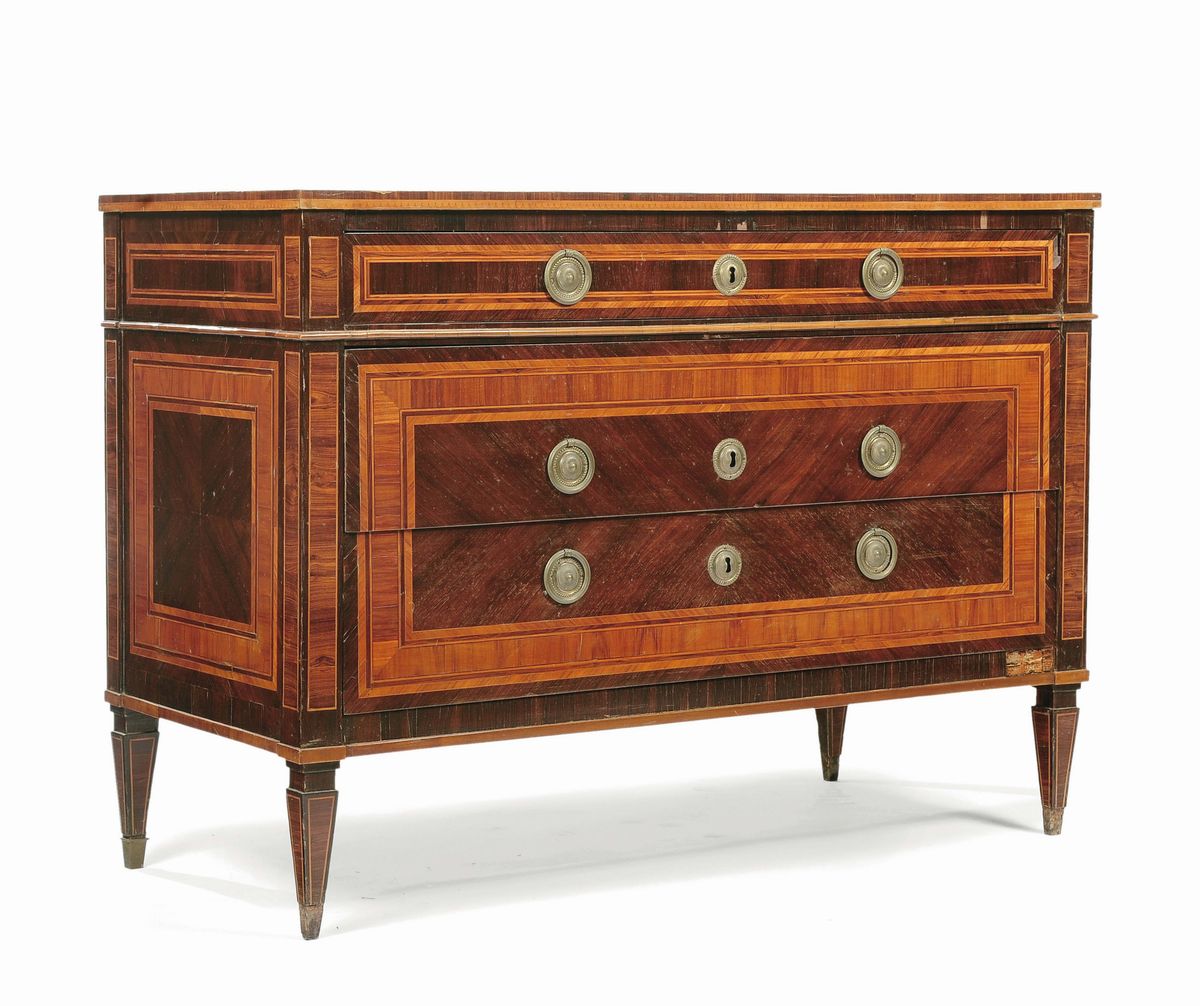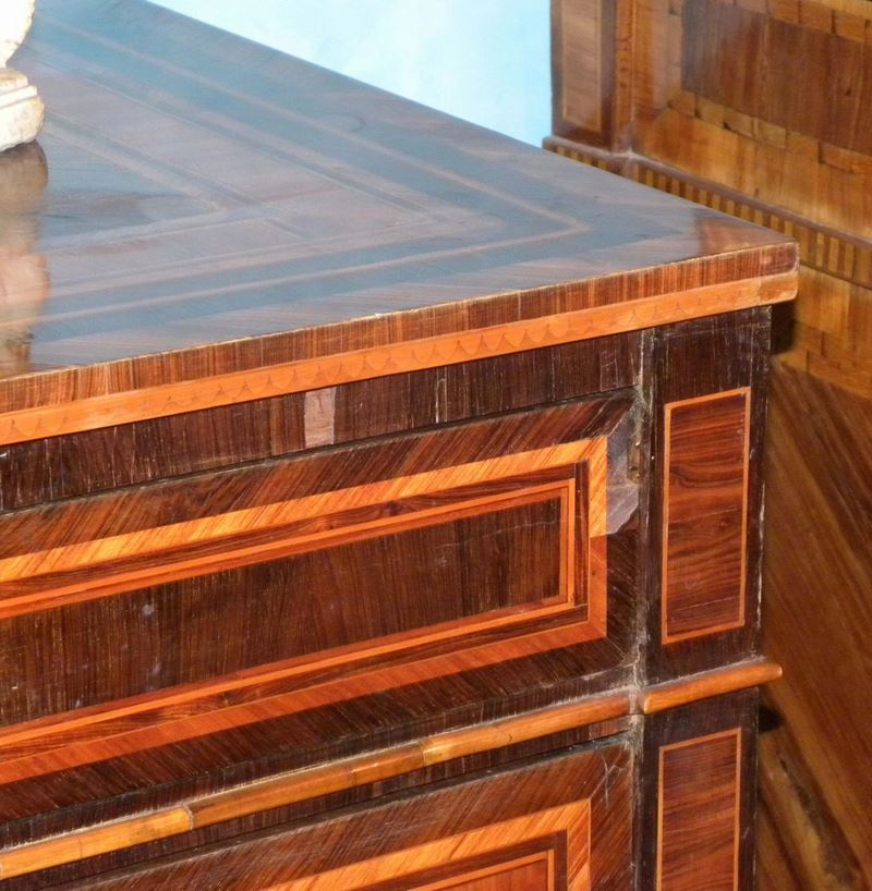Comò Luigi XVI lastronato ed intarsiato, Genova XVIII secolo