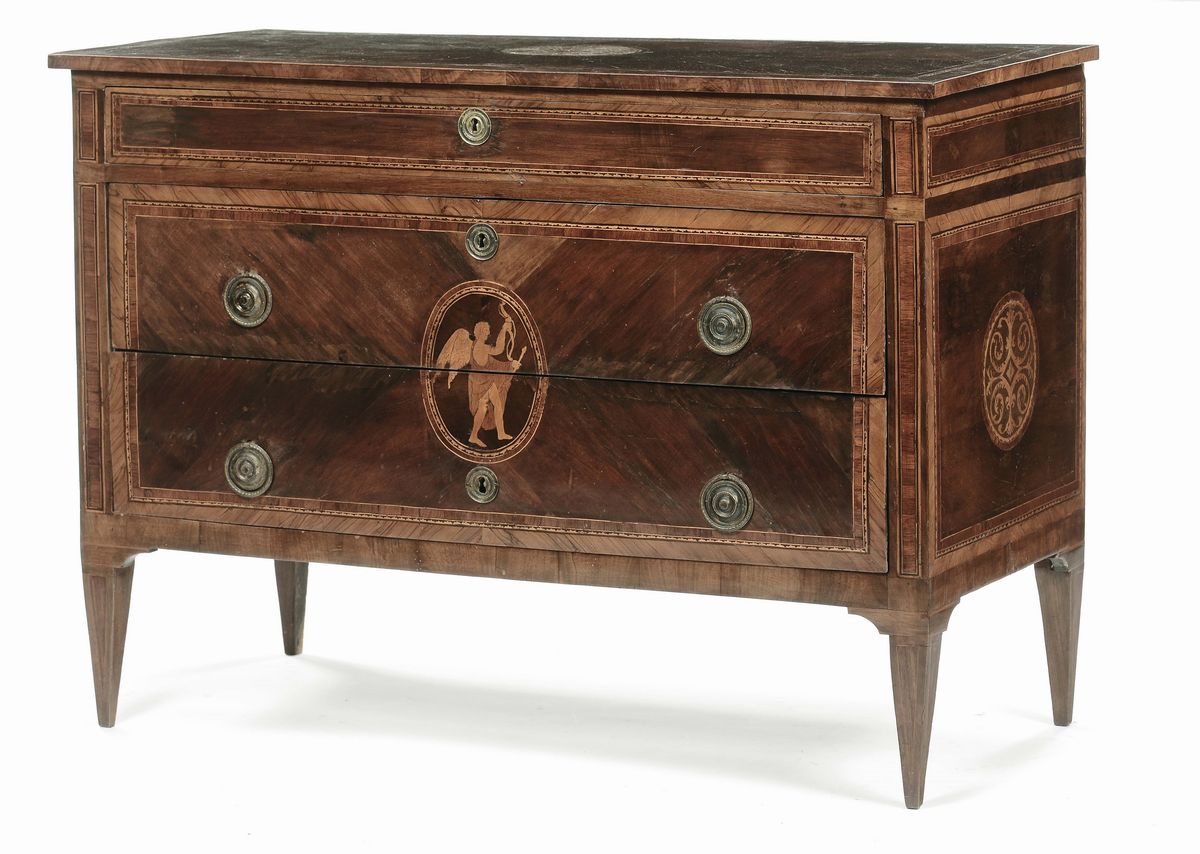 Comò Luigi XVI lastronato ed intarsiato, XVIII-XIX secolo