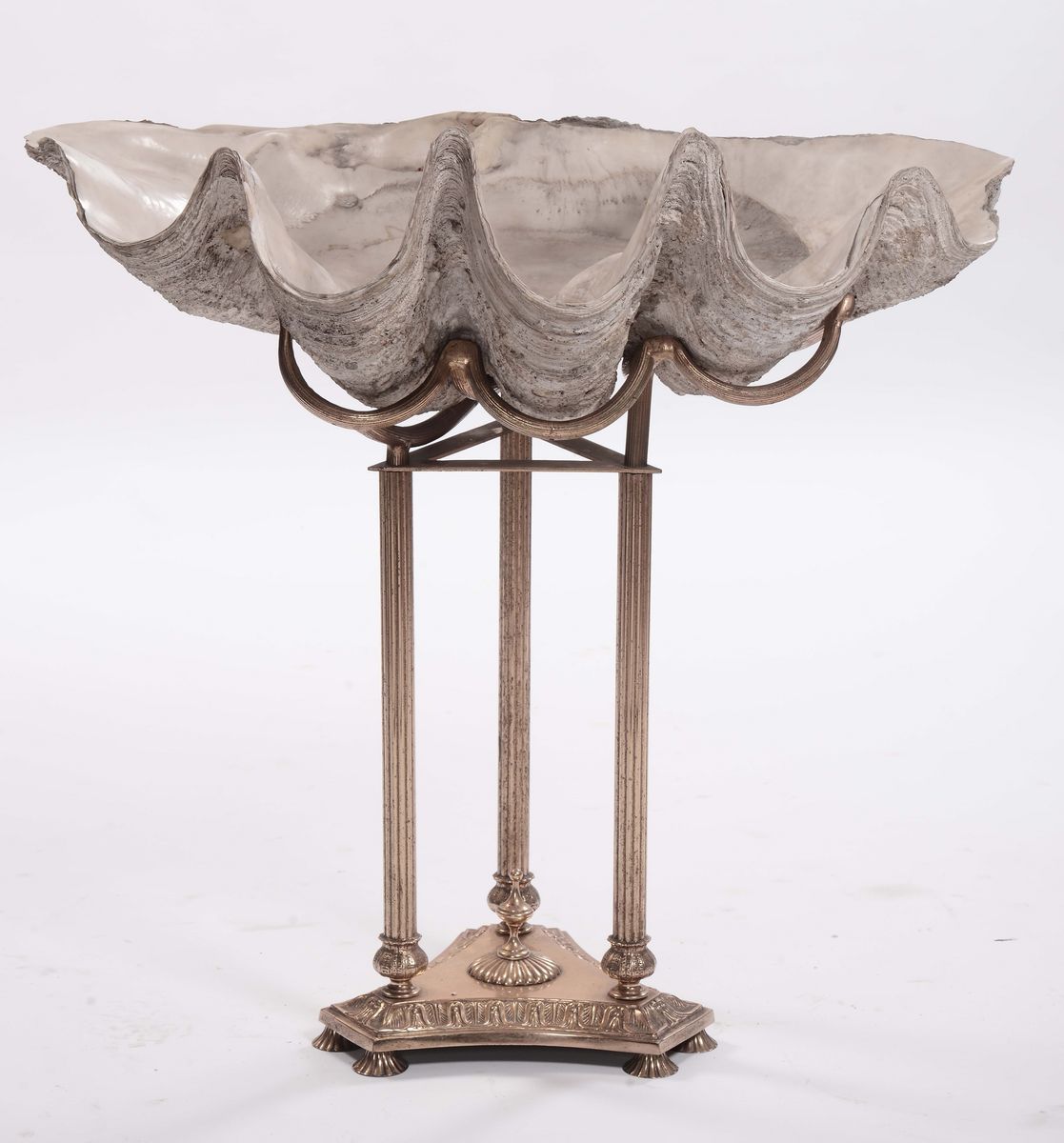 Conchiglia su piedistallo in metallo dorato