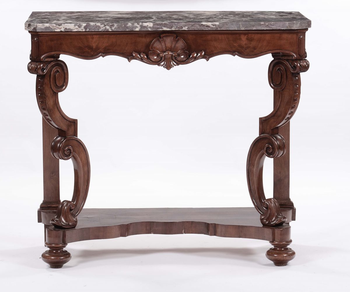 Consolle in noce intagliato, XIX secolo
