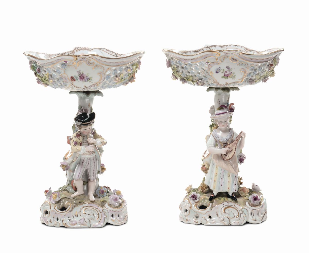 Coppia di alzatine in ceramica policroma, inizio XX secolo
