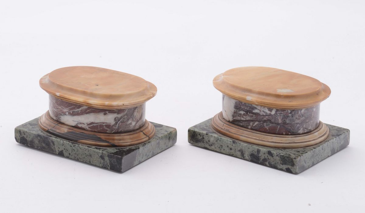 Coppia di basette ovali in marmi colorati, Italia XX secolo