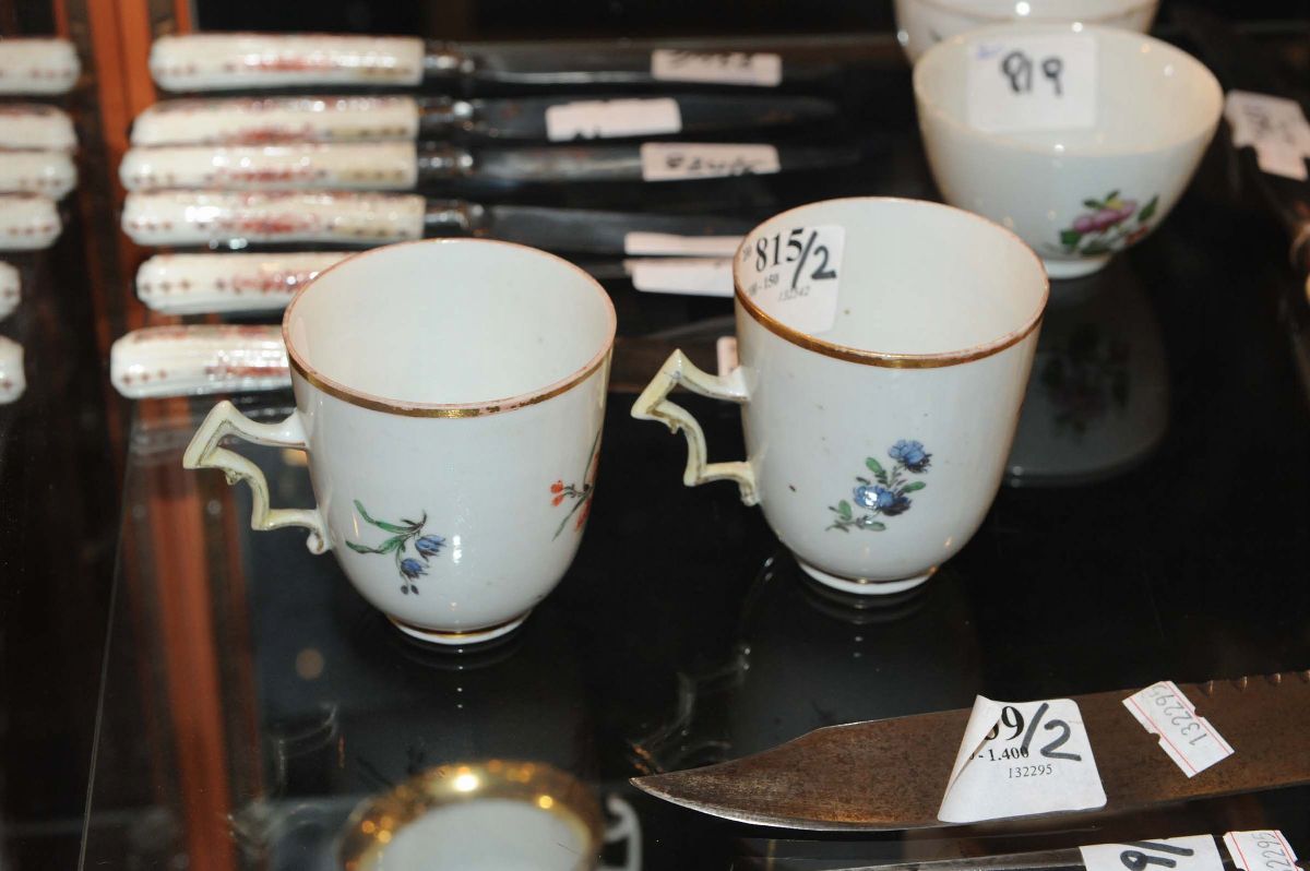 Coppia di tazzine in porcellana a decoro floreale