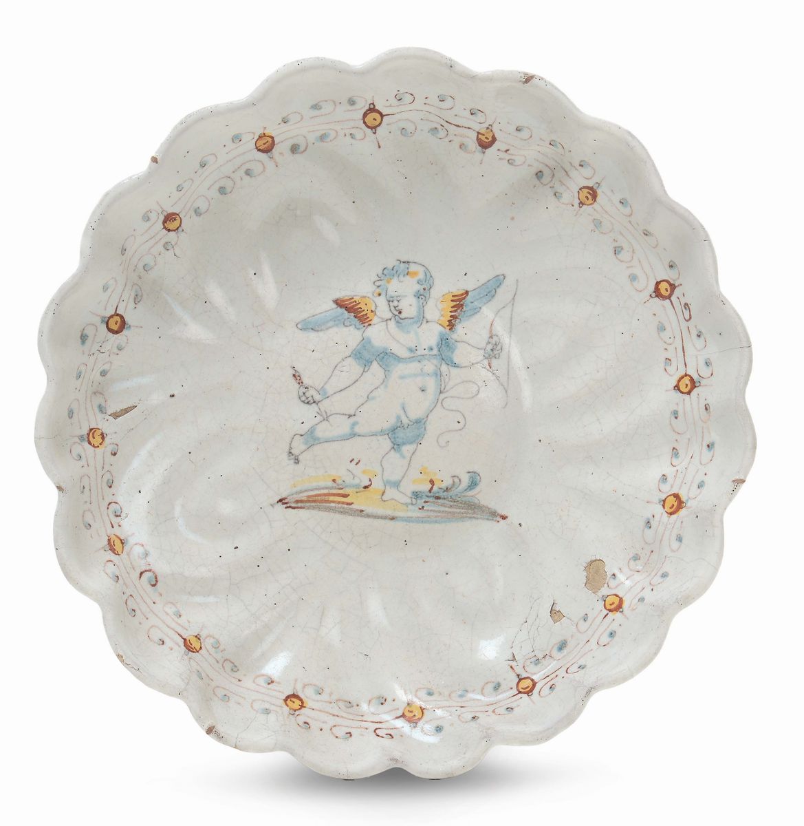 Due crespine in maiolica a decoro compendiario, Deruta XVII secolo