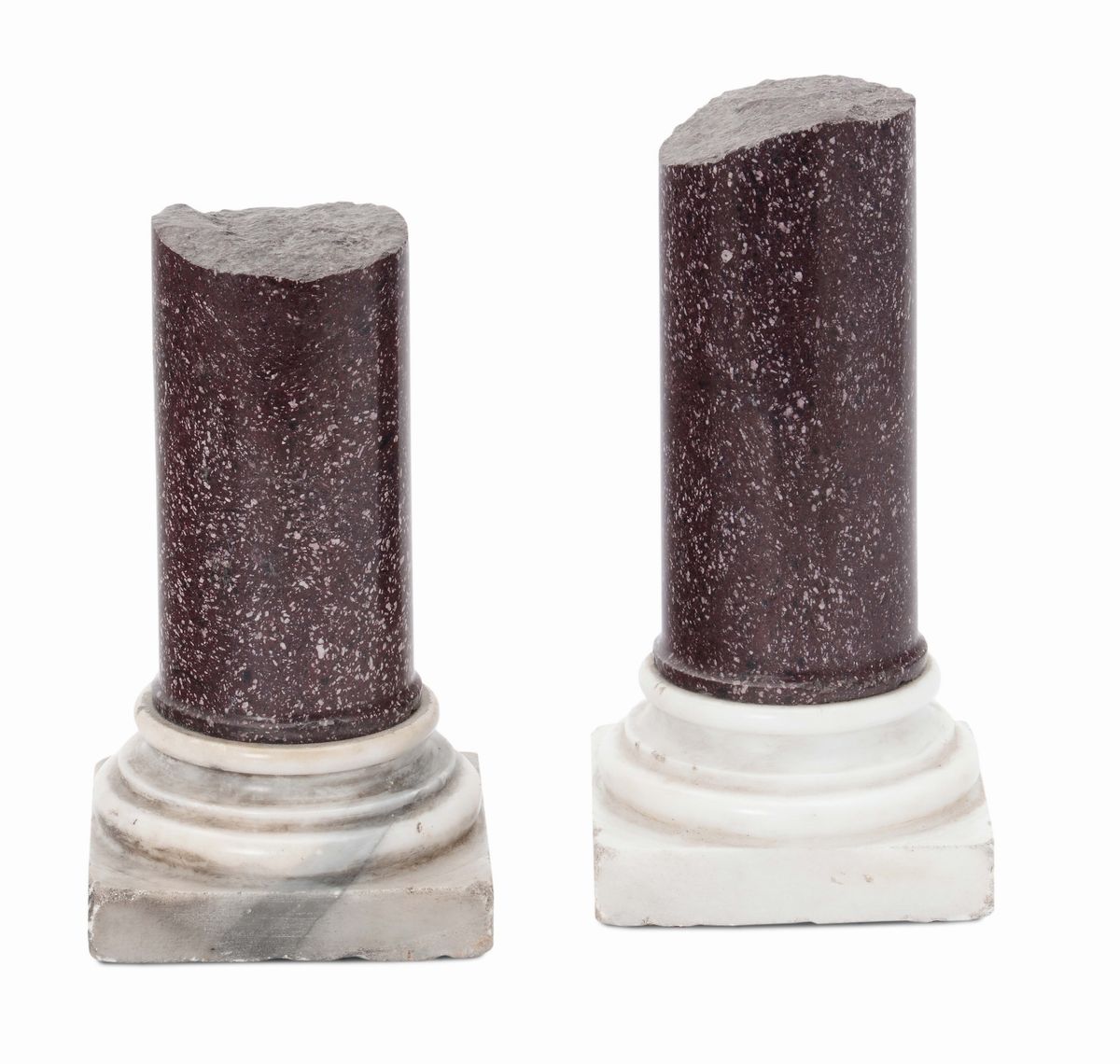 Due modellini di mezze colonne in porfido, Italia XIX-XX secolo