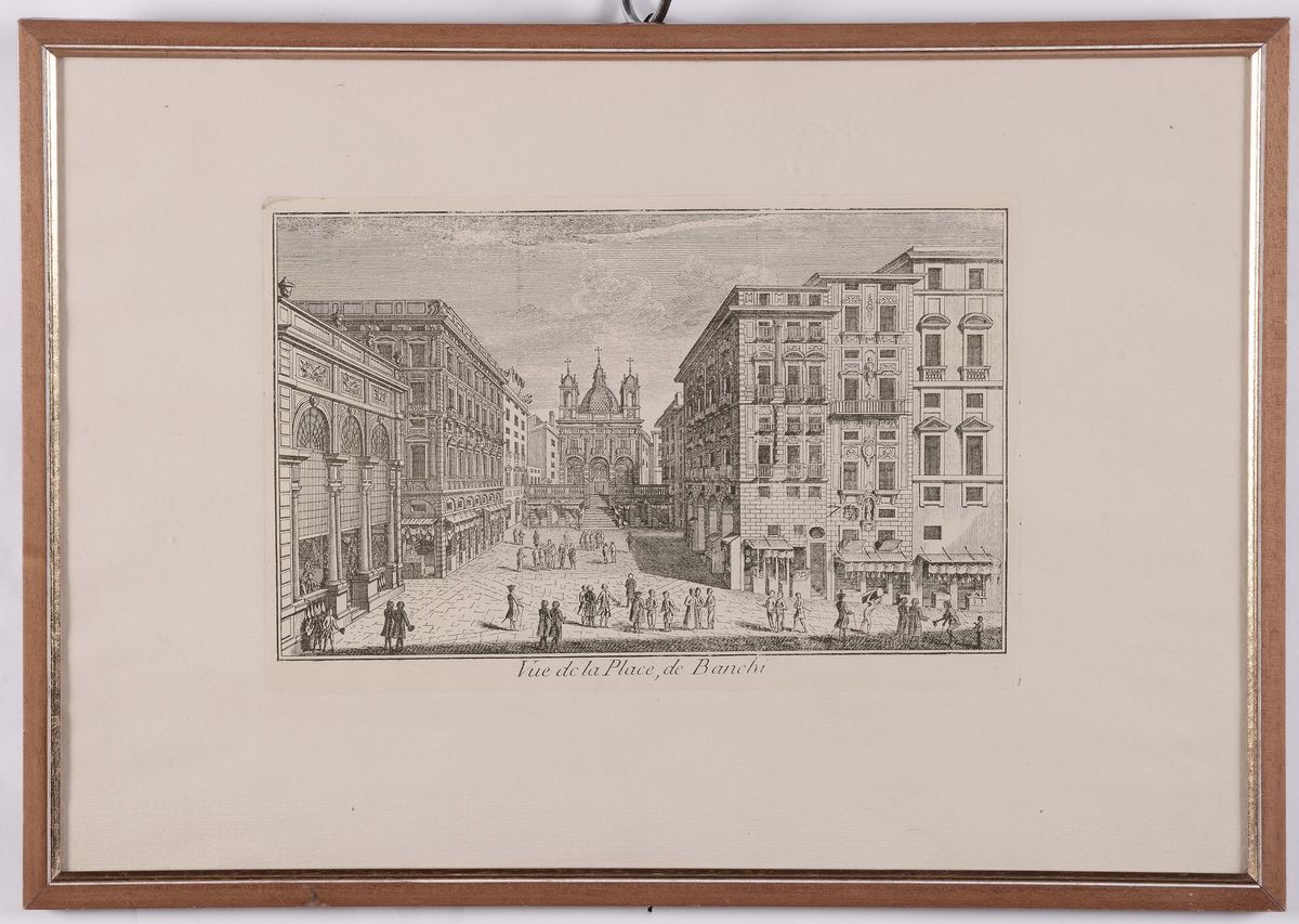 Incisione raffigurante Piazza Banchi a Genova, XIX secolo
