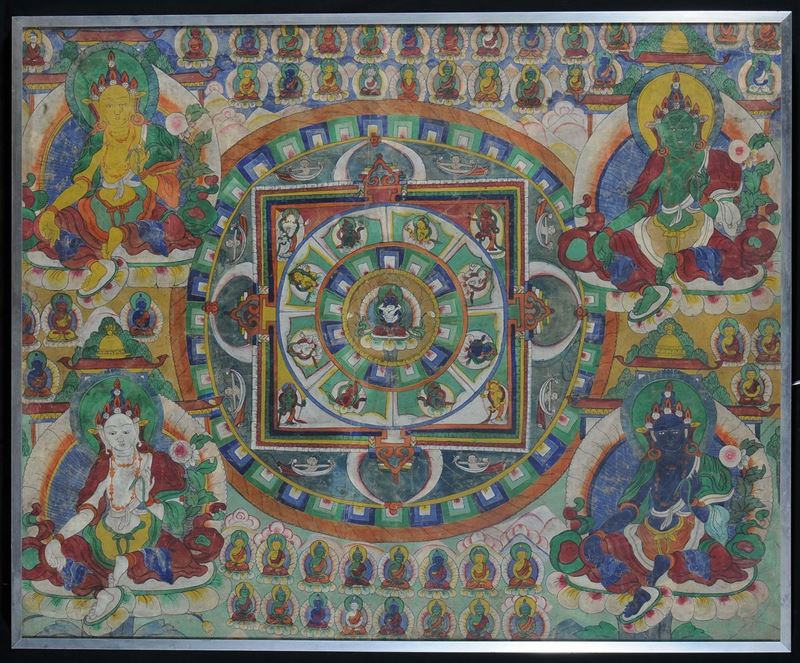 tra cui Tanka tibetano, cm 87x107 e pannello con raffigurazioni di animali e iscrizioni
