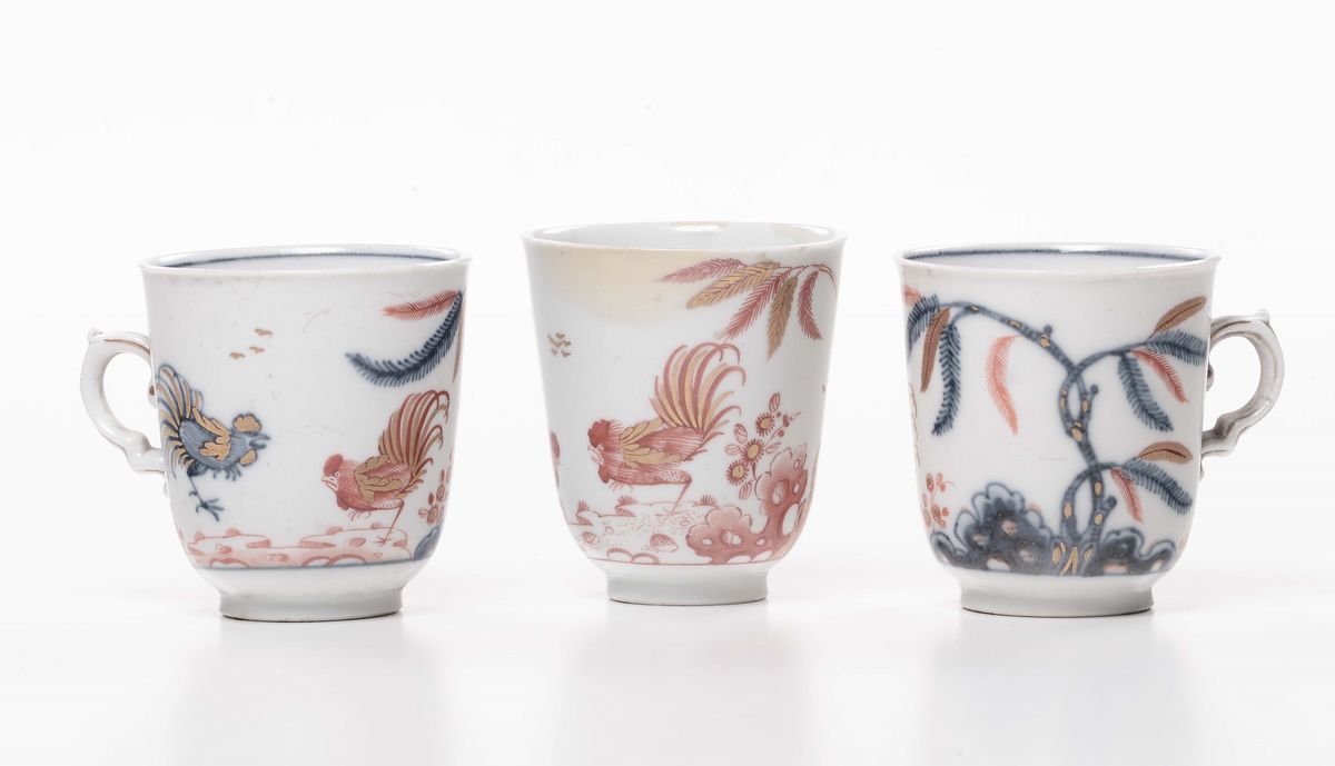 Lotto di tre tazzine in porcellana