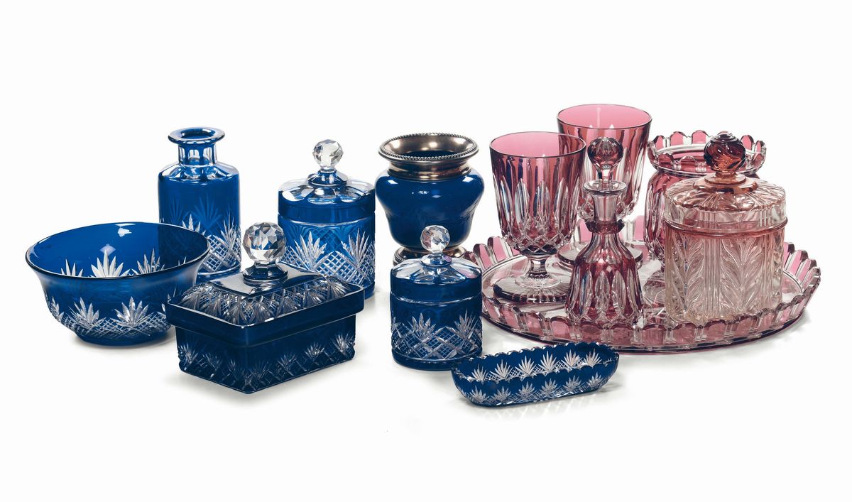 Lotto di vari pezzi in cristallo molato di gusto Biedermeier