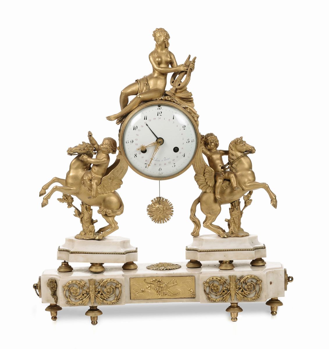 Orologio in bronzo dorato e marmo, Grebert a Paris, fine XVIII secolo