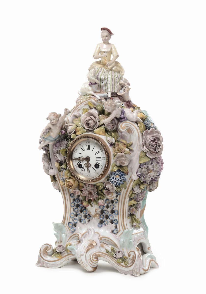 Orologio in porcellana policroma, Meissen XX secolo