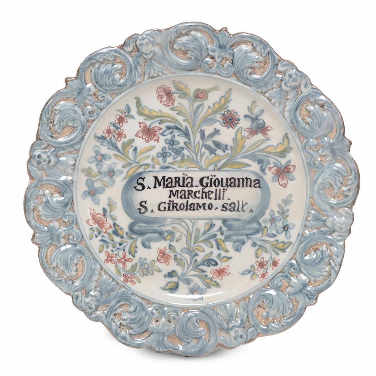 Piatto in maiolica a decoro floreale, Pavia XIX secolo