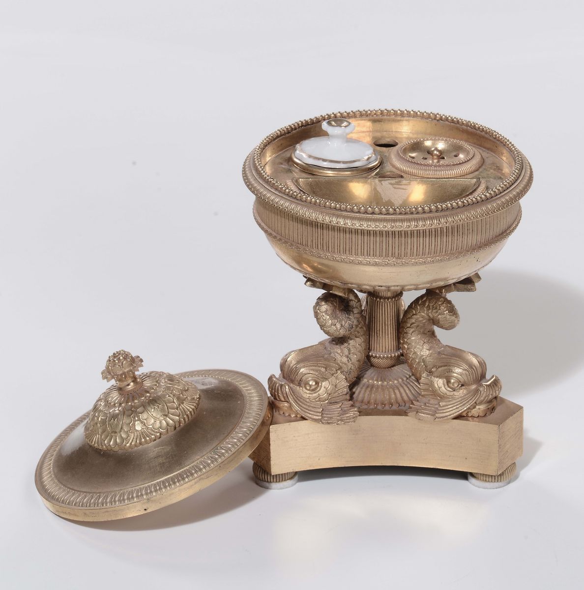 Piccolo calamaio in bronzo dorato, XIX secolo