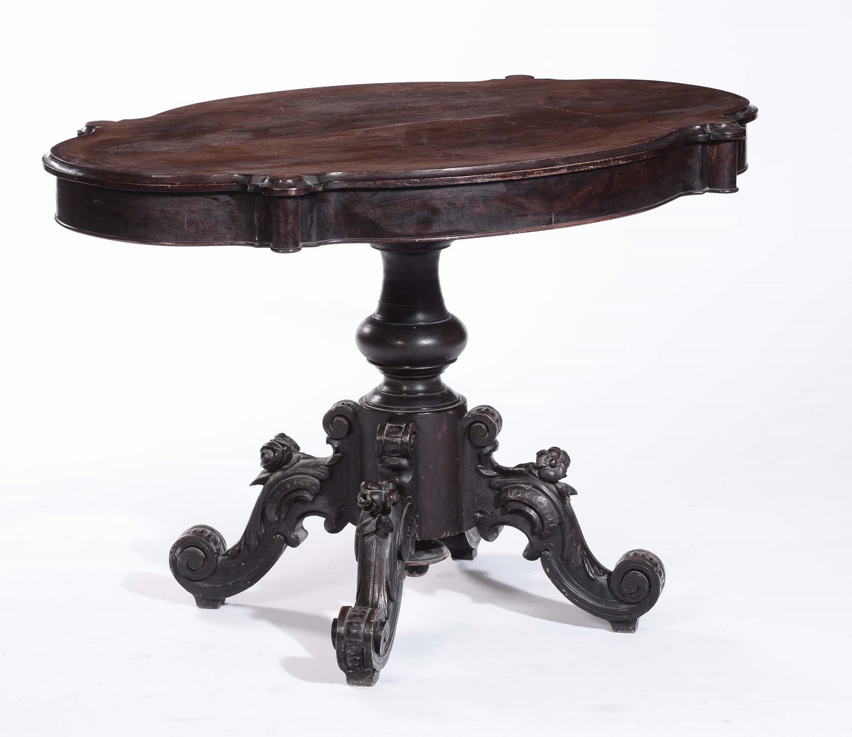 fusto centrale tornito terminante con gambe a voluta, cm 118x78x79