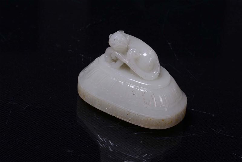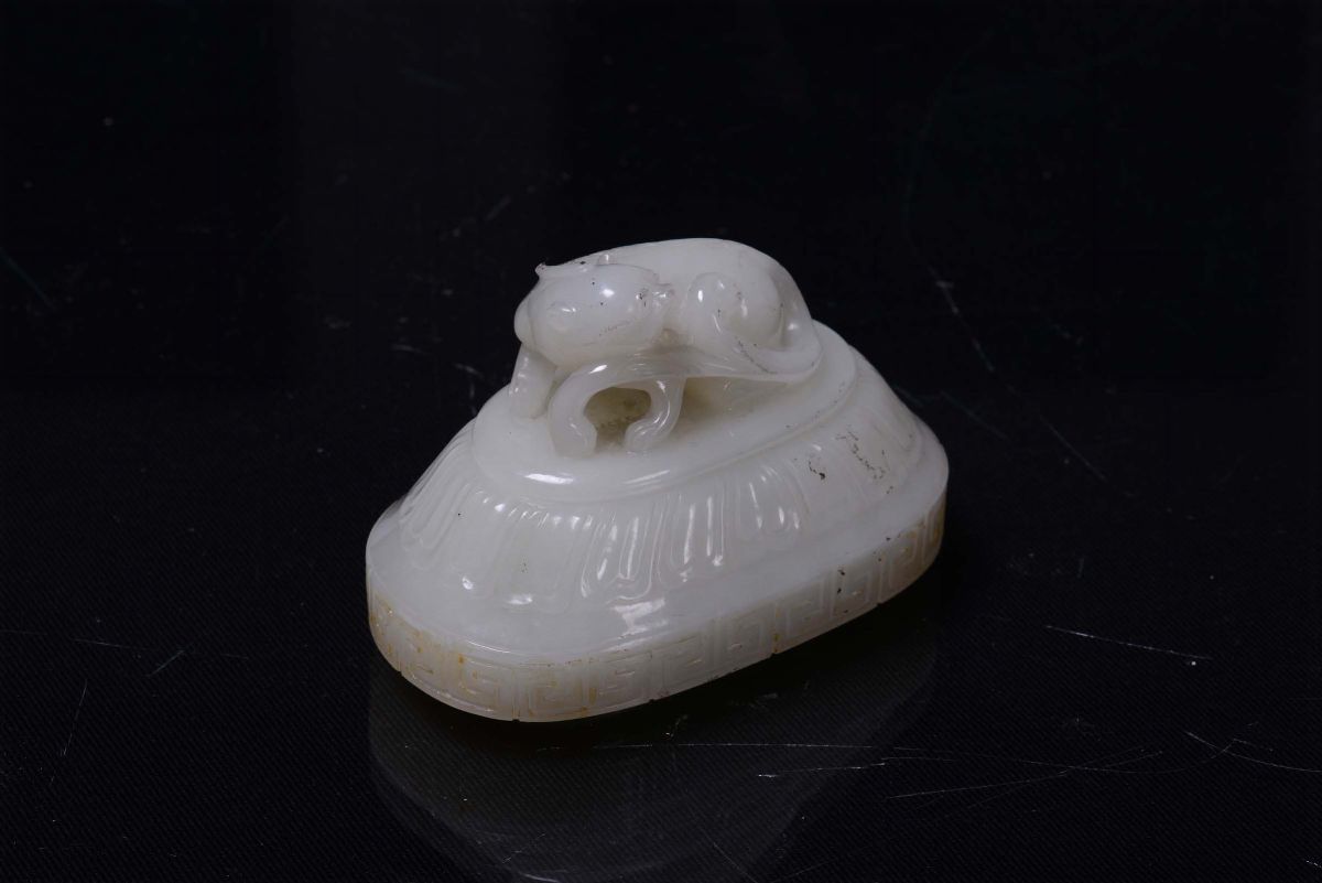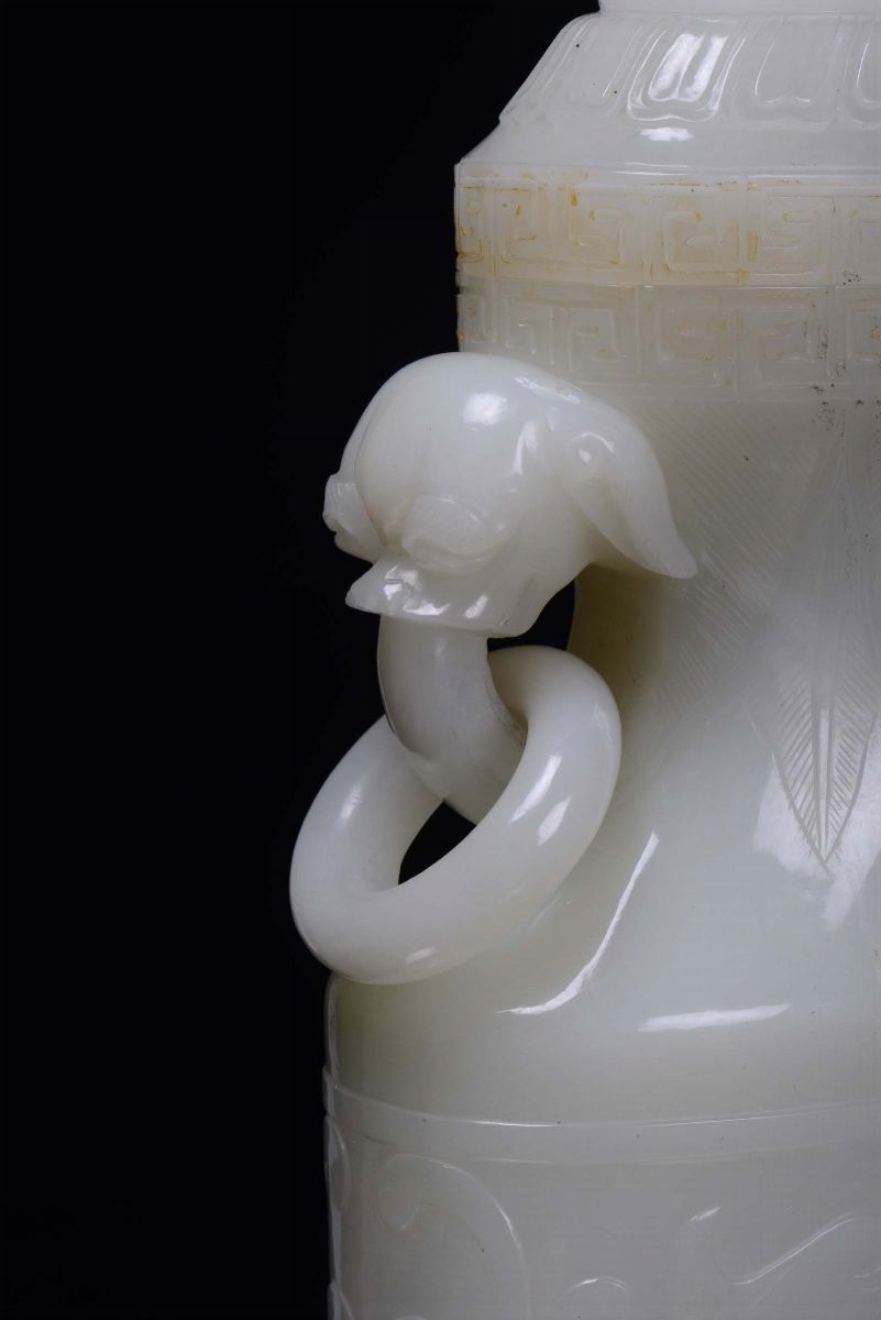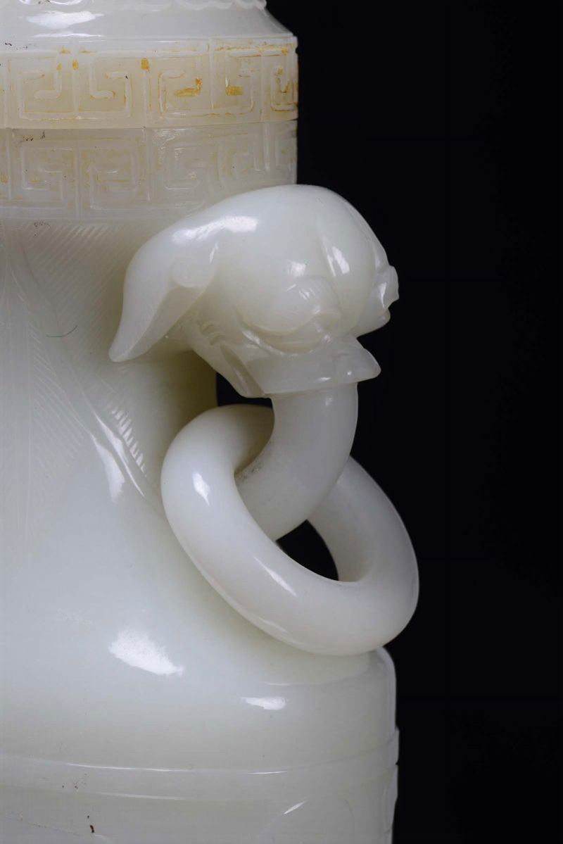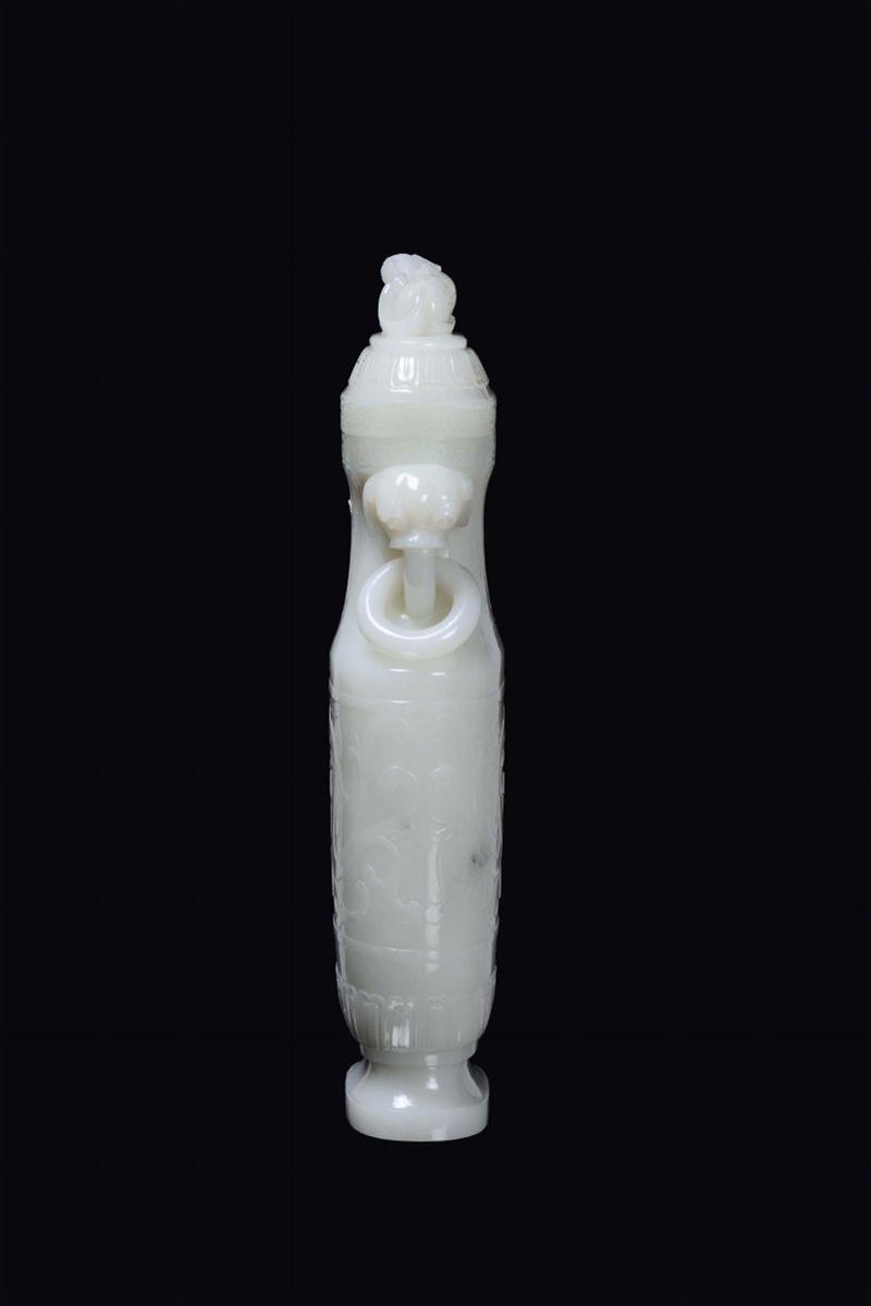 A beautiful white jade vase carved with dragons and Pho dog cover, China, Qing Dynasty, 19th century