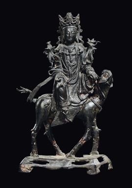A bronze Guanyin on horseback figure, China, Ming Dynasty, 17th century