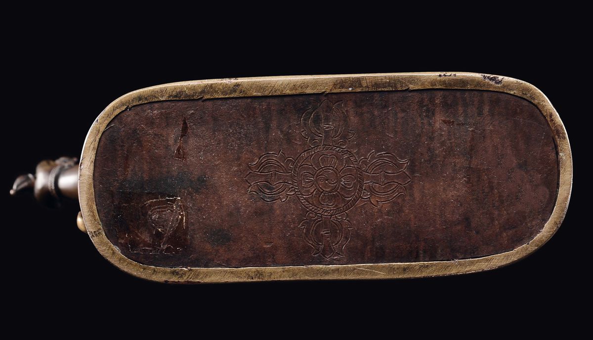 con la mano sinistra in posiione di vitarkamudra e nella destra stringe un vajra.h cm 18