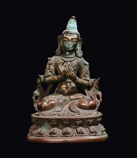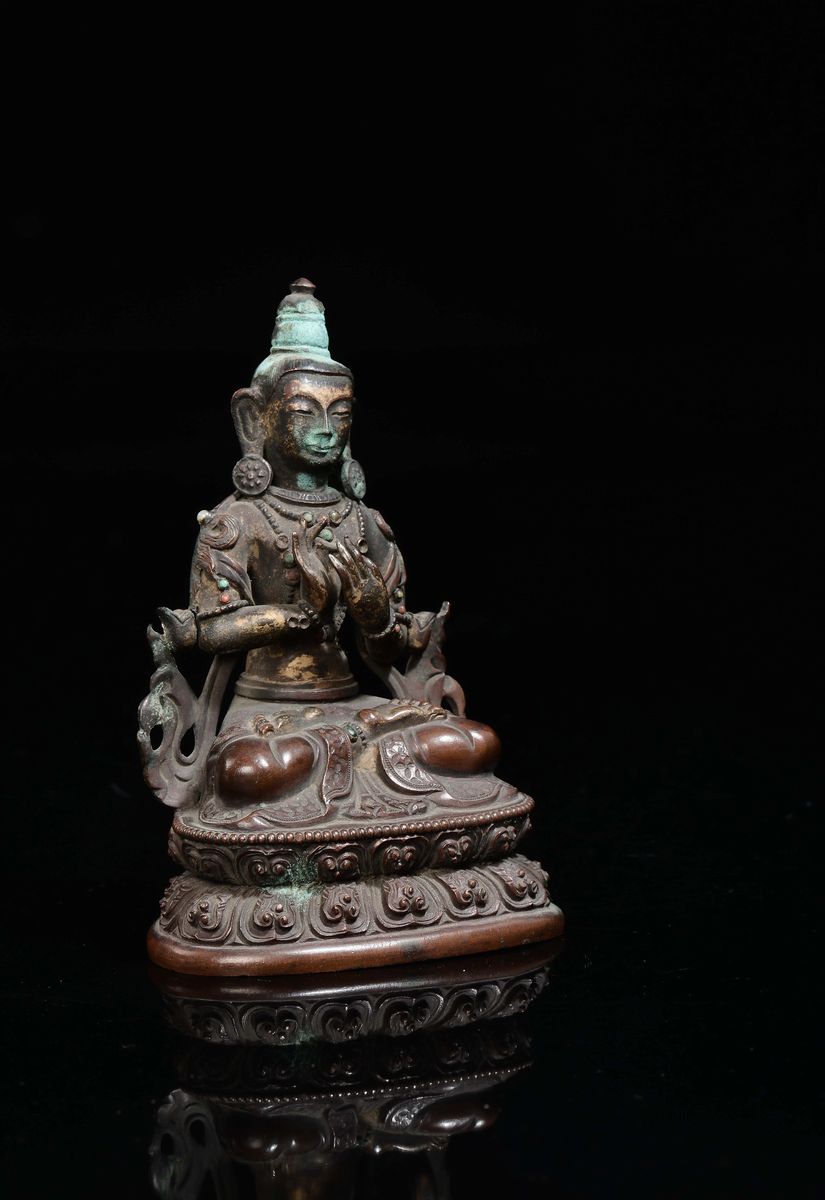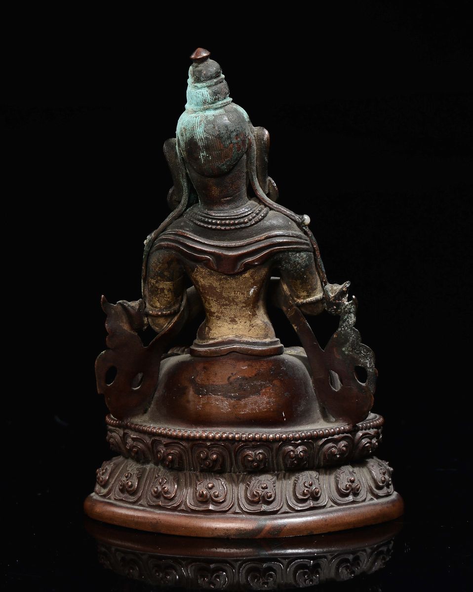A copper Amitaya figure on a double lotus flower, China, Ming Dynasty, 16th century
