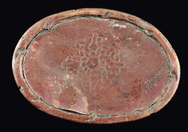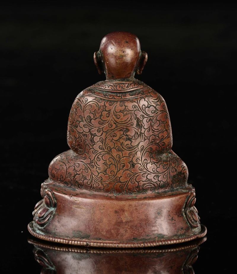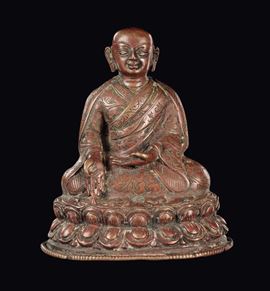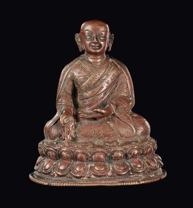 A copper Lama figure on a double lotus flower, Tibet, 17th century