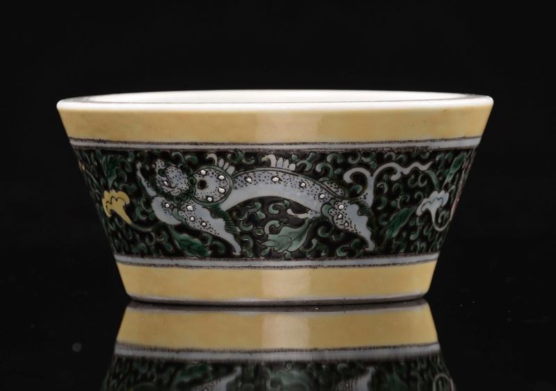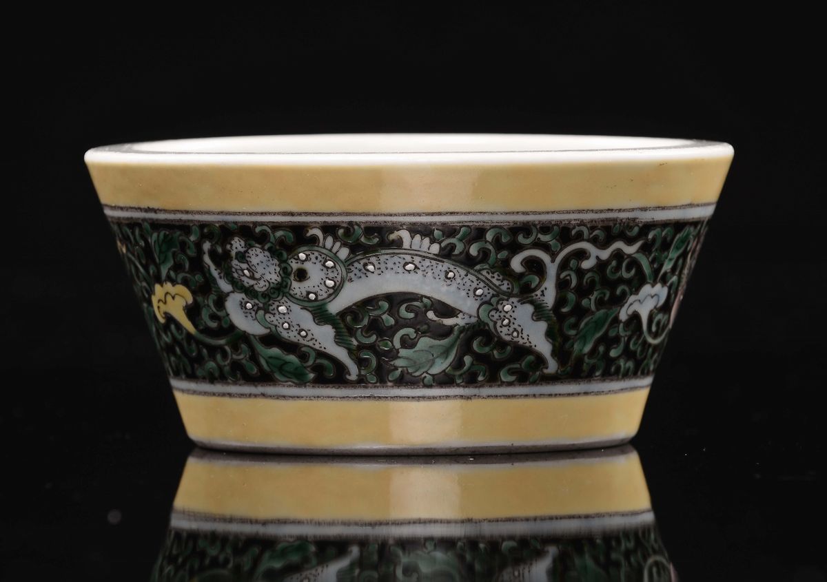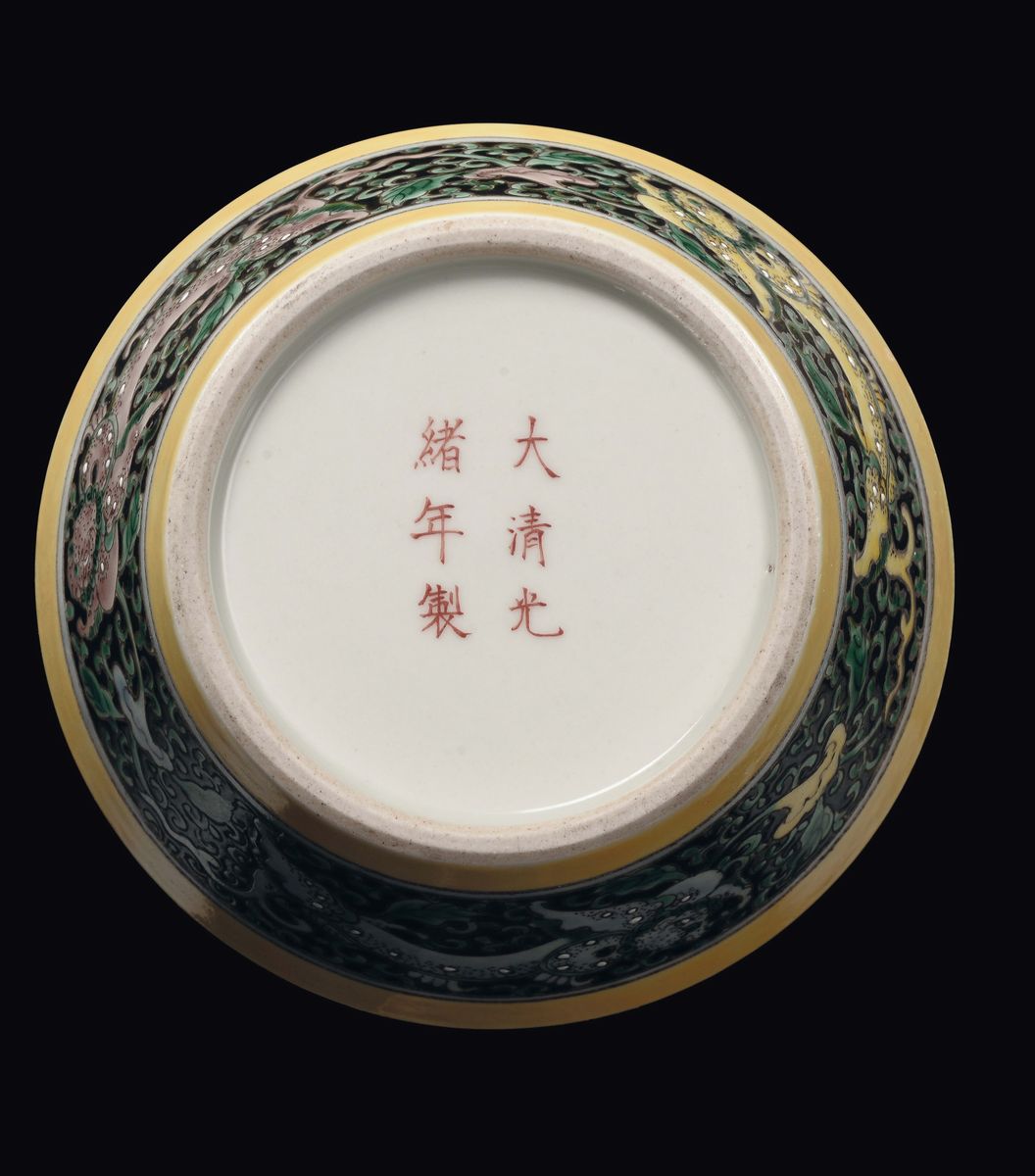 A Famille Noir yellow-ground bowl with floral decoration, China, Qing Dynasty, Guangxu Mark and Period (1875-1908)