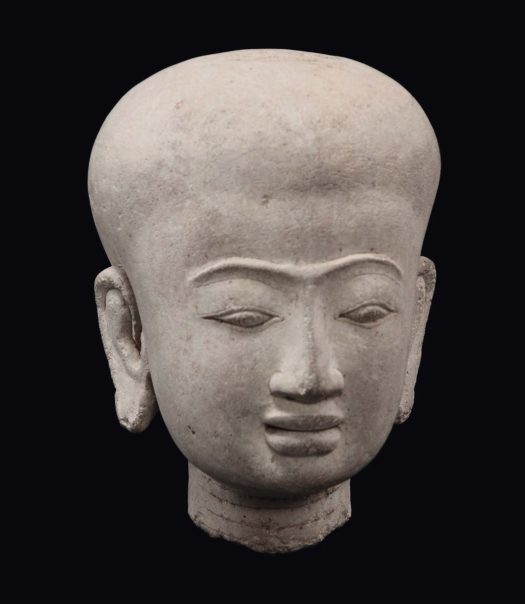 A finely carved stone face, South East Asia, 17th century