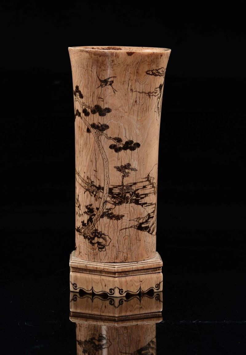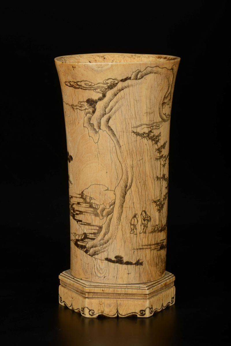 A finely cerved ivory vase depicting commom life scenes, China, Qing Dynasty, Kangxi Period (1662-1722)
