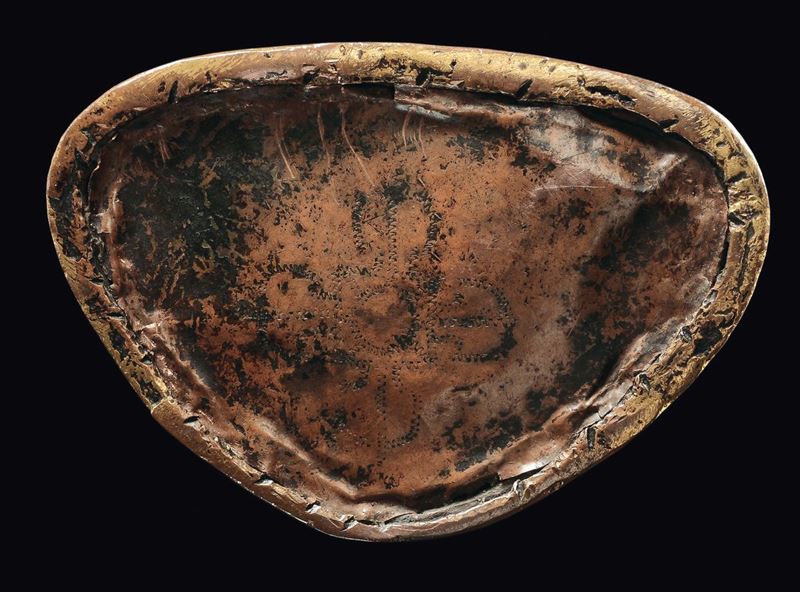 mani in posizione di dyanamudra che sorreggono vasetto, coperto da gioielli a perline e tiara poggiata su fronte e spalle.h cm 18,5