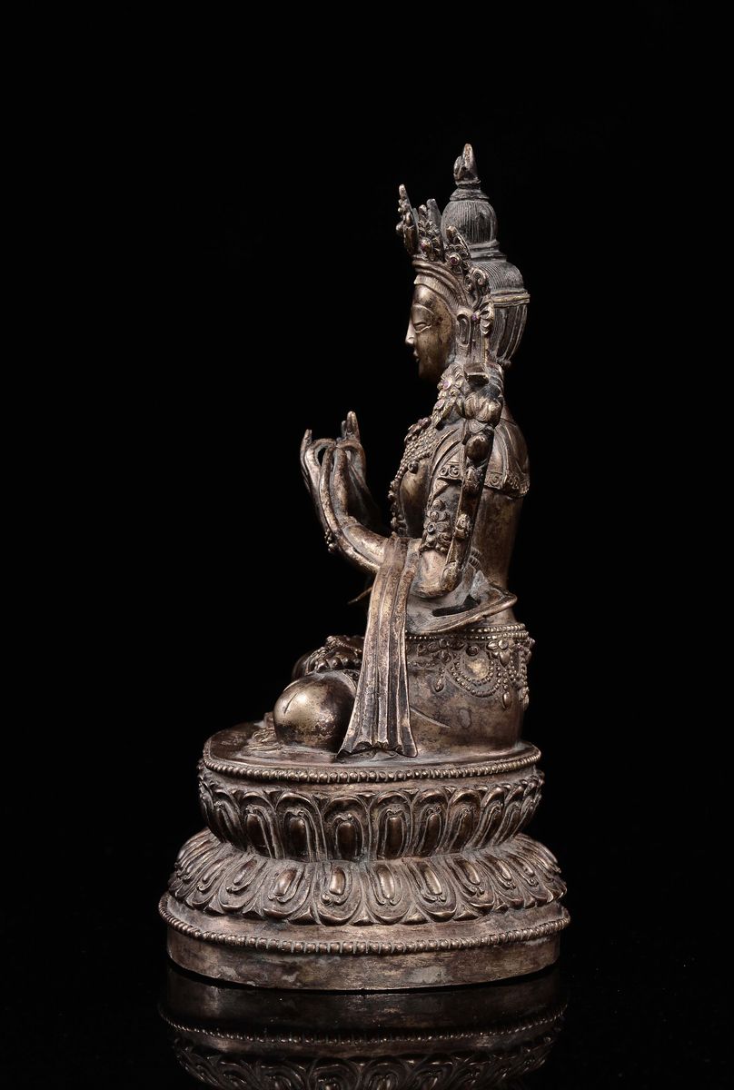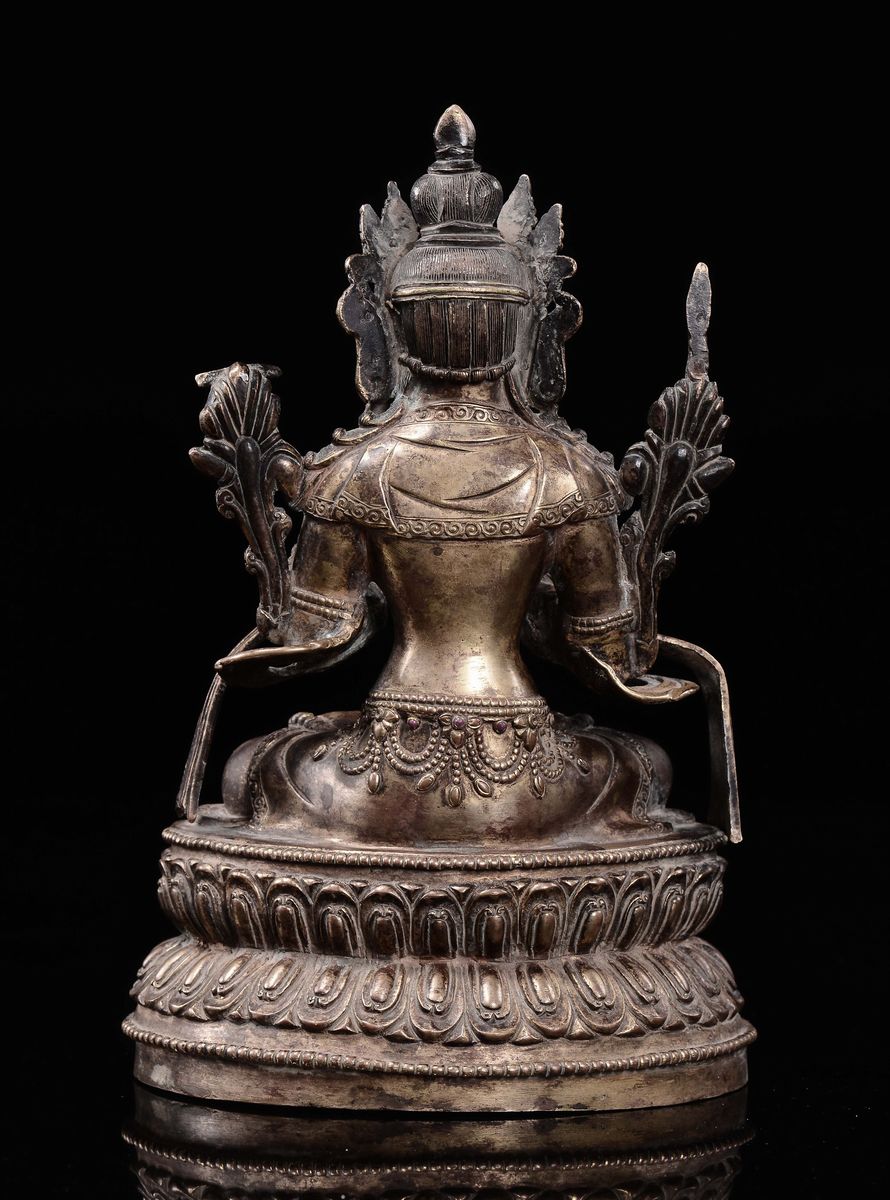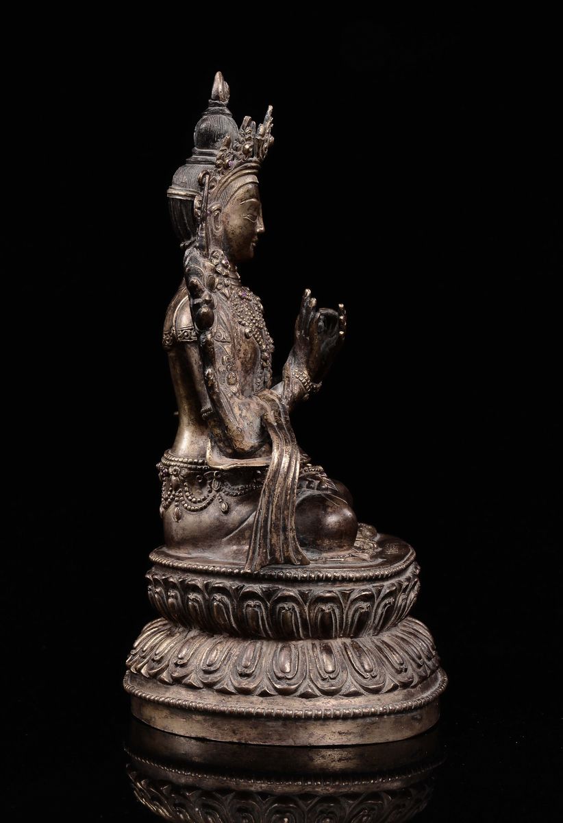 A gilt bronze Tara on a double lotus flower, China, Qing Dynasty, 19th century
